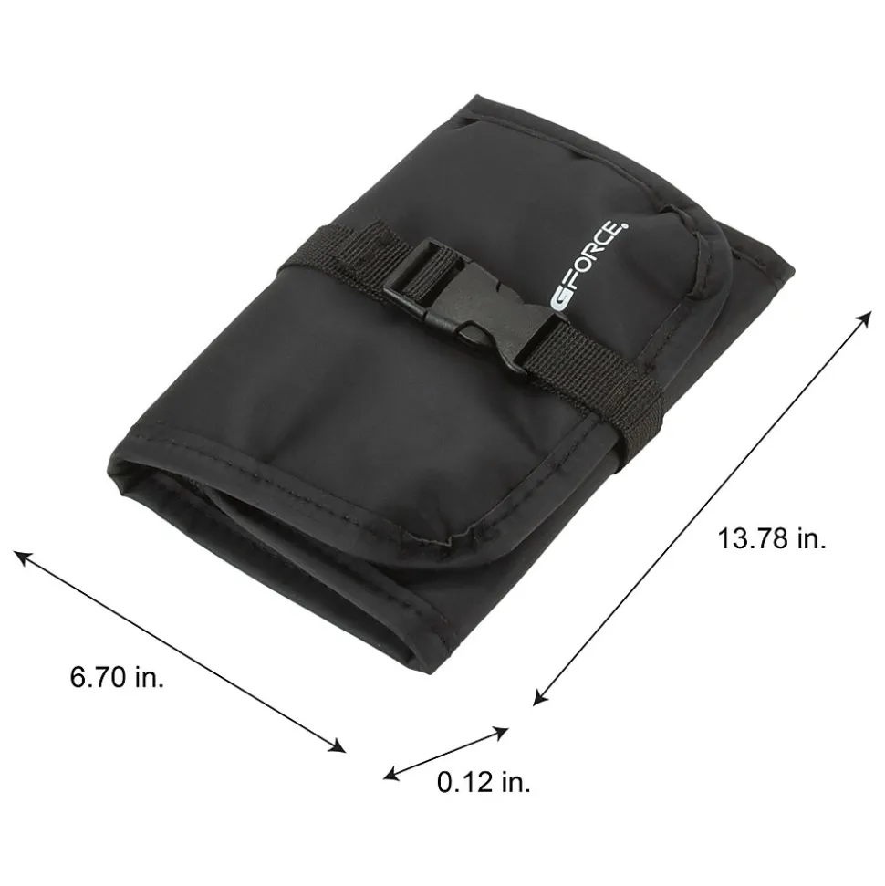 Traveling with your phone, iPad, tablet, and computer? Your life is about to become easier with the G Force tech accessory organizer, designed with three separate mesh pockets to store your chargers, headphones and batteries, keeping them neat and detangled. Mesh construction allows you to see what is in each pocket without having to open them. The organizer folds up with an adjustable closure strap and side release buckle. The case is water-resistant and made of ripstop material, protecting all of your gadgets precious accessories. It fits perfectly in your handbag, suitcase, briefcase, backpack, or car.