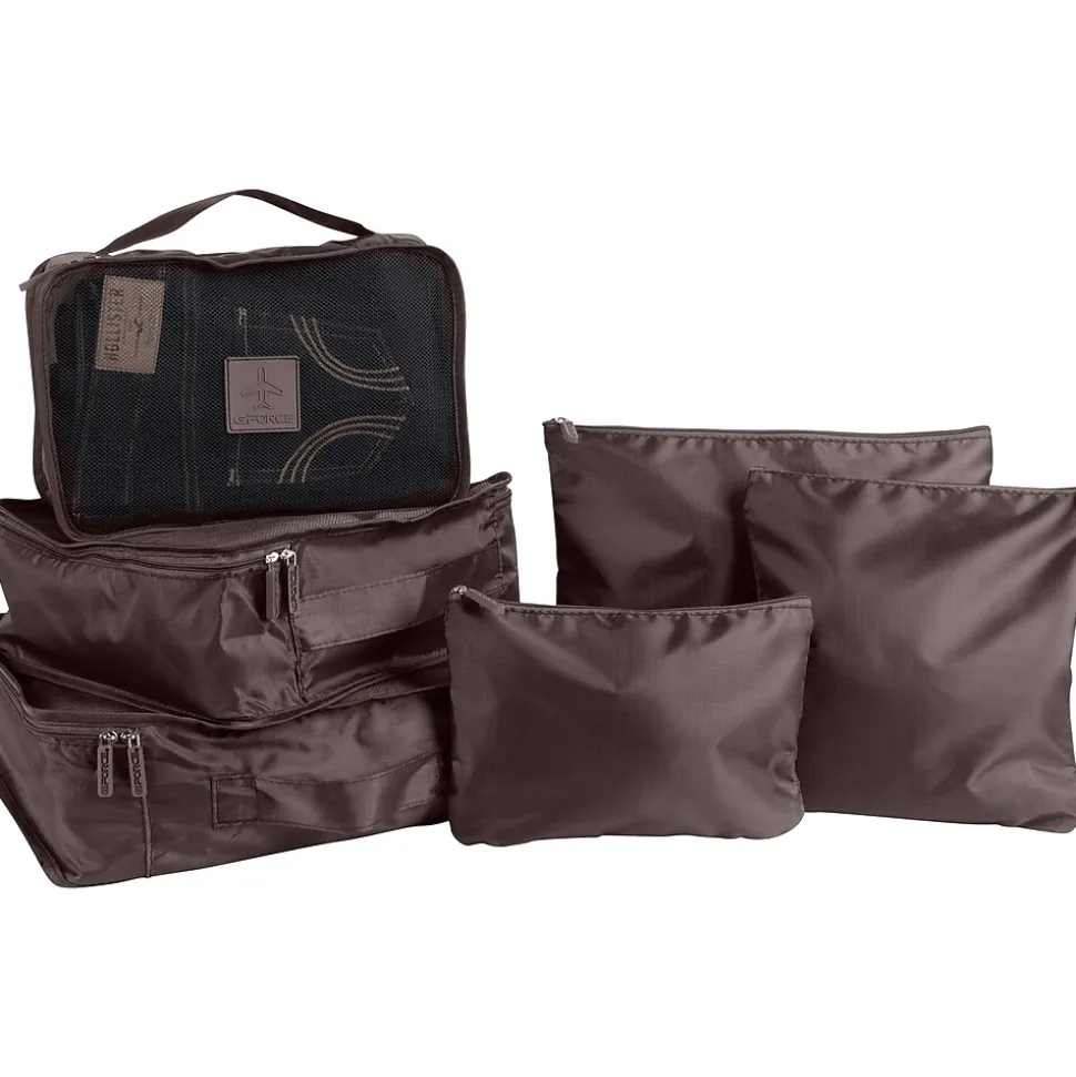 Make packing stress-free with the G Force six-piece ultimate traveling set, which includes three pouches (small, medium, and large) and three packing cubes (small, medium, and large). Each piece is made of lightweight, water-, stain- and tear-resistant ripstop material, making these bags durable and long-lasting. Maximize the space in your suitcase by organizing your packing essentials with the help of this set.