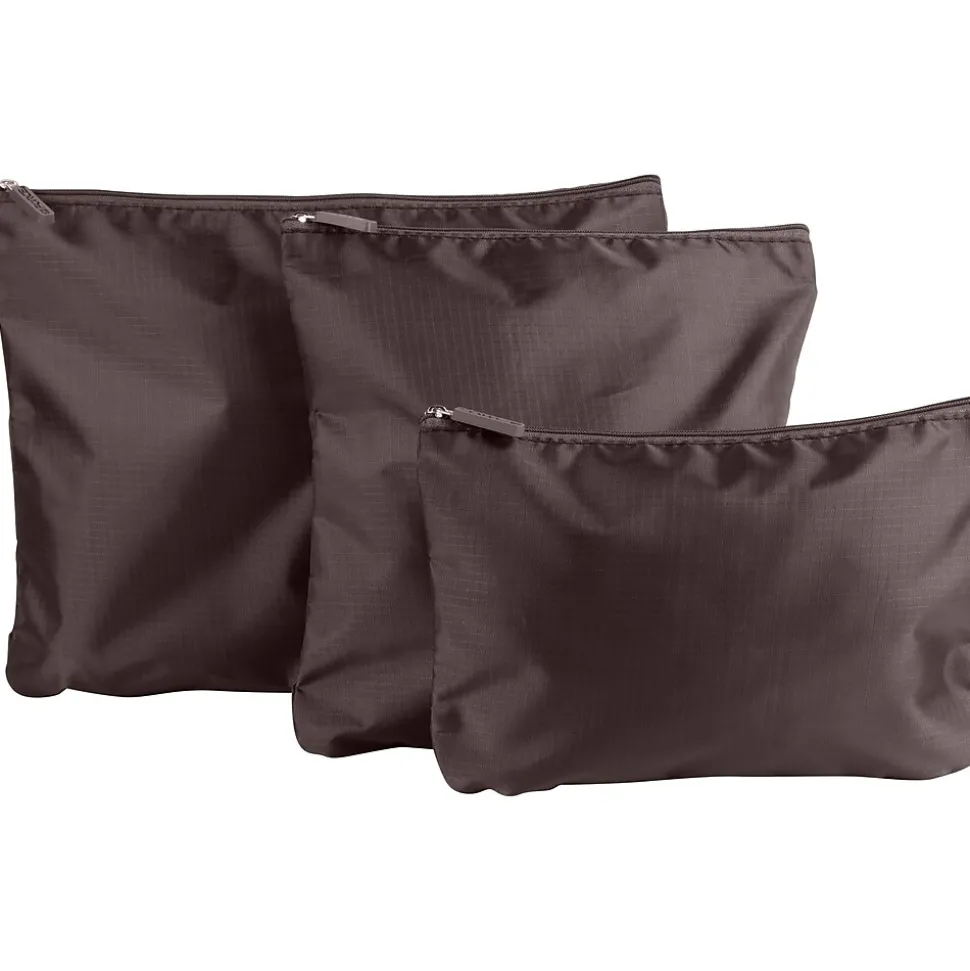 - Set includes: three zippered pouches and three packing cubes