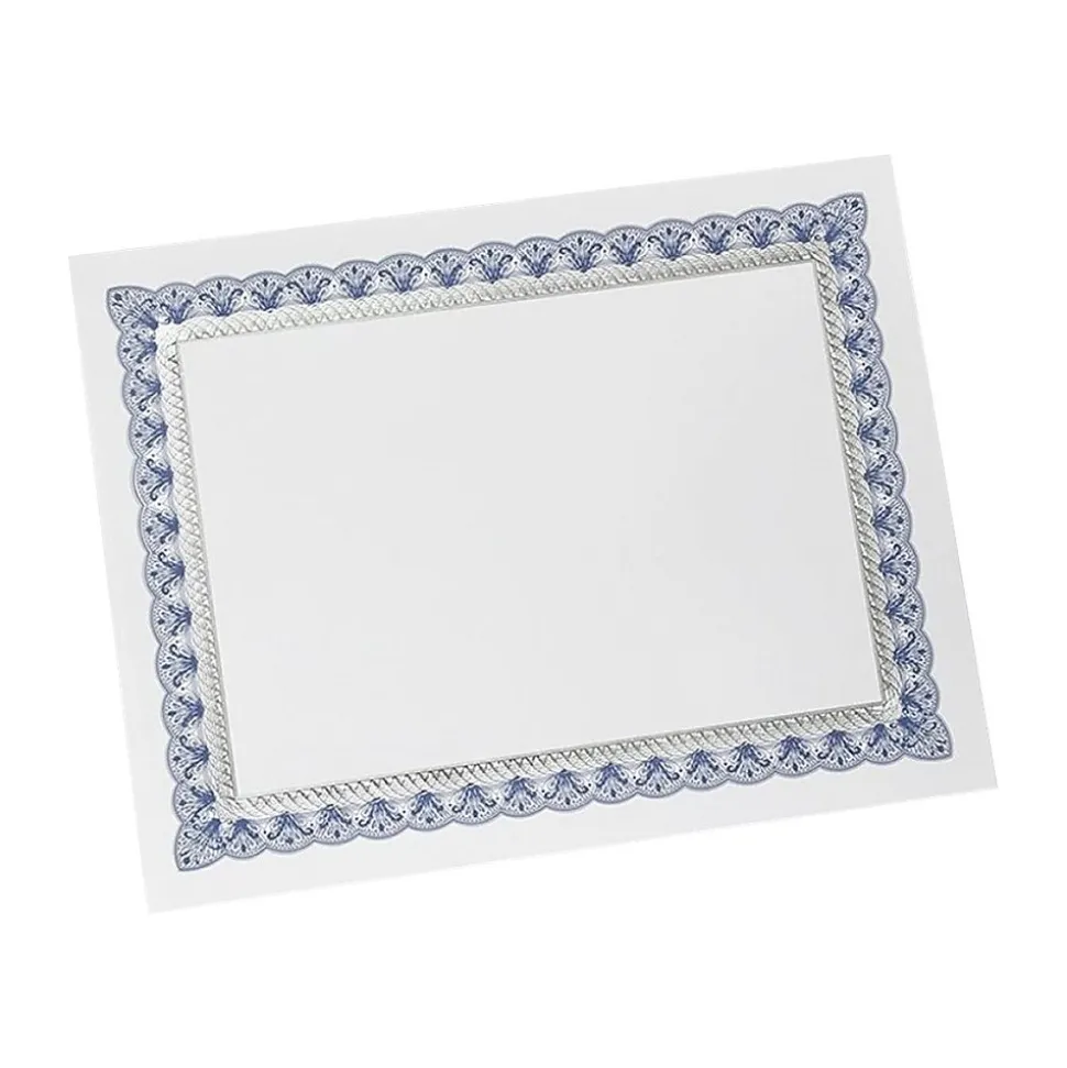 Motivate employees with these certificate papers. The acid-free and lignin-free paper avoids gradual discoloration to make for a long-lasting keepsake, while the blue and silver foil borders add to the aesthetic appeal of the award. These Gartner Studios certificate papers can be handwritten or passed through a printer for customization with company brand and recipient details, and the heavyweight cardstock paper increases durability.