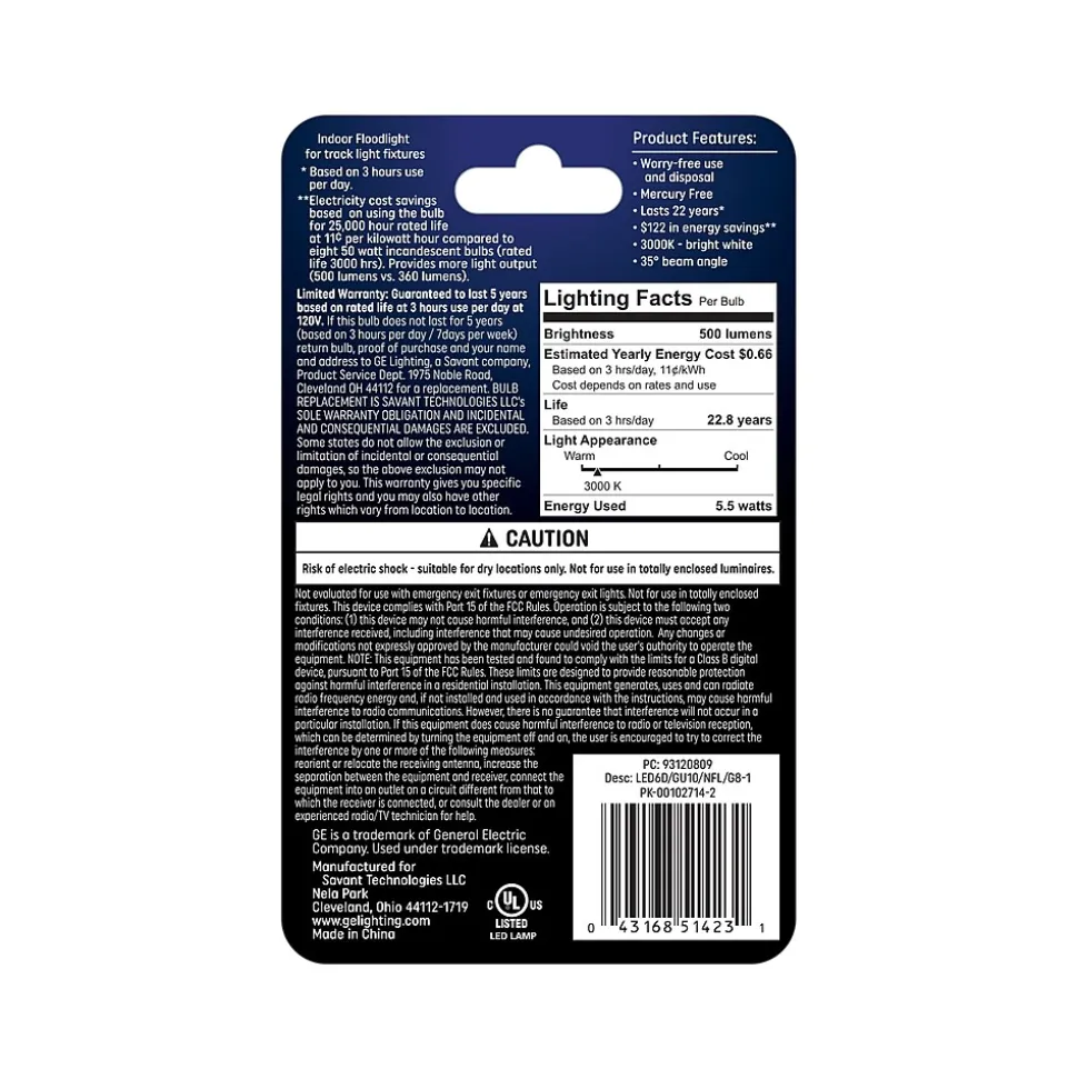 - Replaces a 50W incandescent bulb and uses only 5.5W