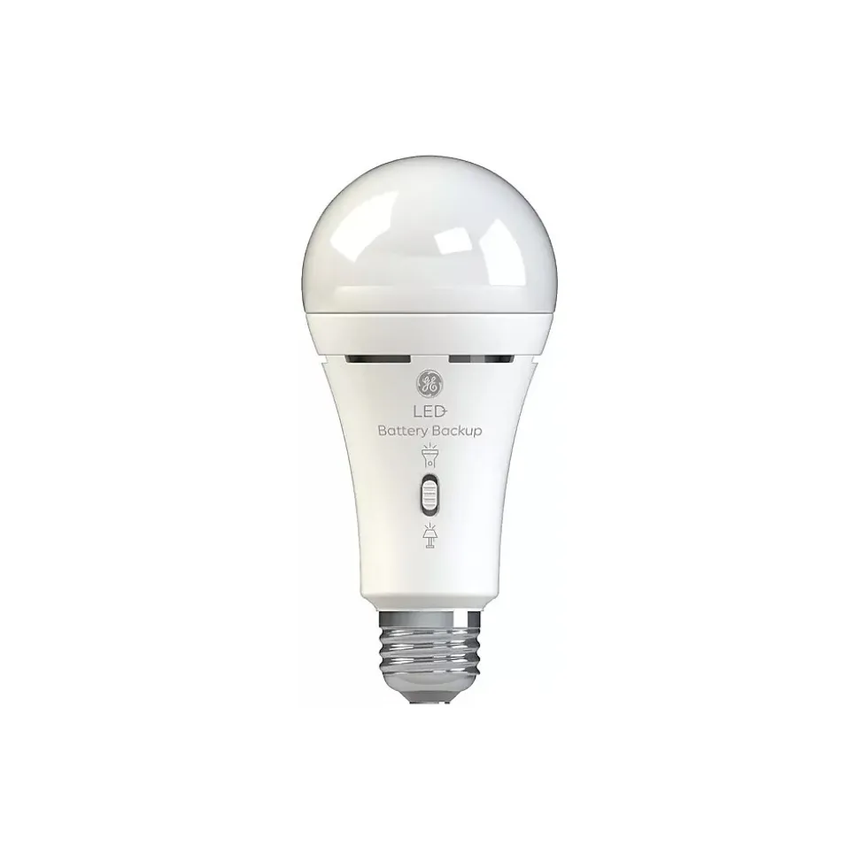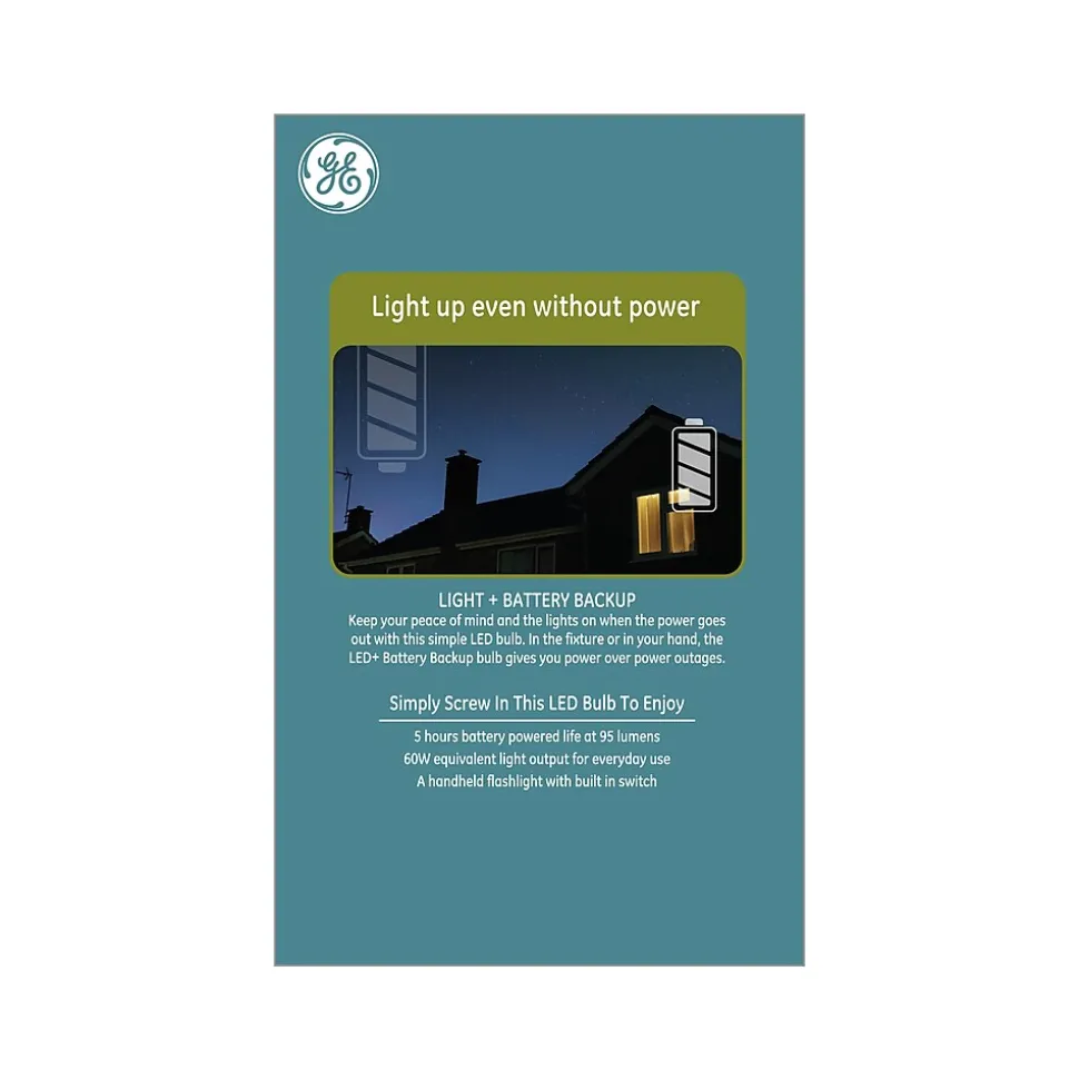 Keep your peace of mind and the lights on when the power goes out with this simple LED bulb. In the fixture or in your hand, the GE LED+ battery backup bulb gives you power over power outages. This self-charging emergency light bulb allows you to keep a light on even when the power is off and can function similarly to a flashlight in emergency situations.