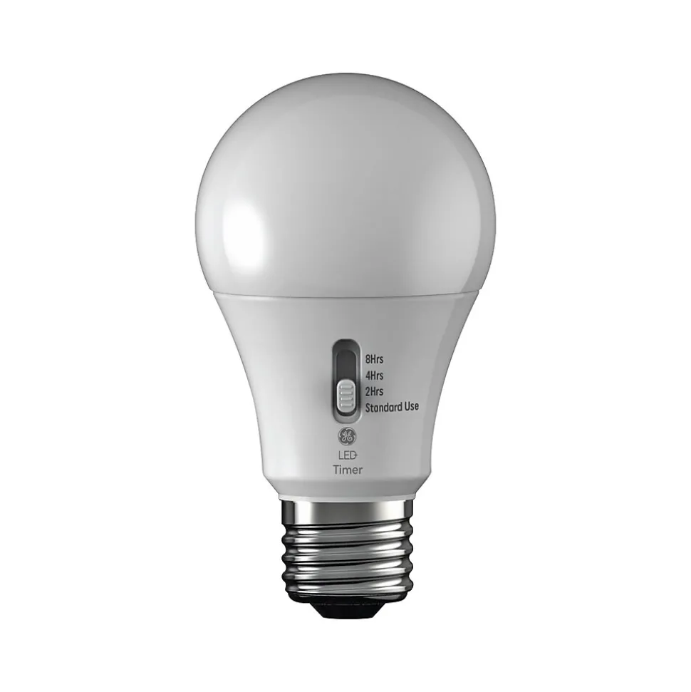 This simple GE LED+ bulb keeps a schedule, so you don’t have to. With a built-in timer that repeats every 24 hours, you can feel secure knowing it will turn on and off at the same time, so you always have light when you need it.