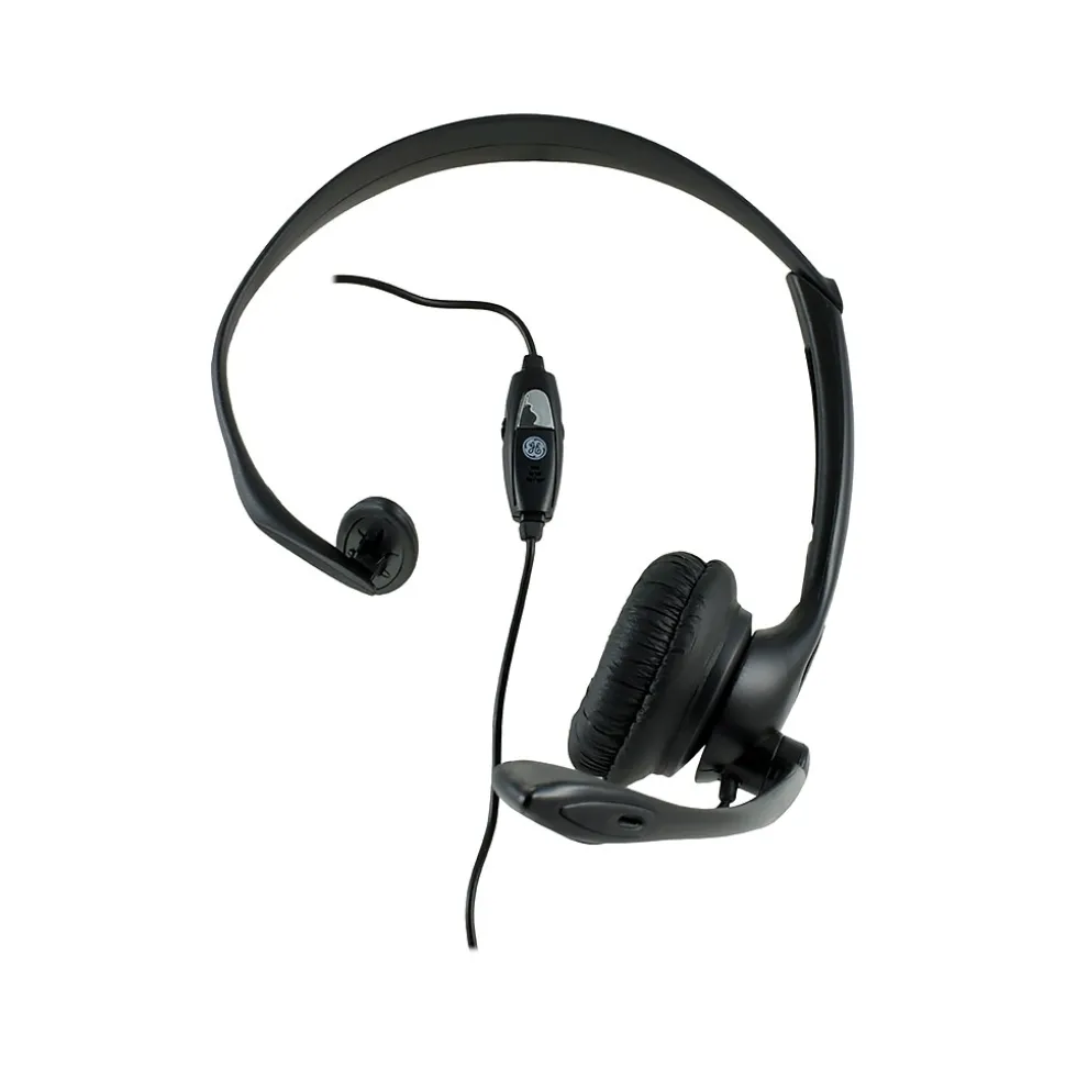 Enjoy clear audio and hands-free operation with this wired headset. Featuring a padded ear cushion and a flexible headband, this headset fits securely and helps you stay comfortable during long calls. A noise-canceling microphone helps enhance clarity by filtering out noise, while a flexible boom arm lets you reposition the microphone for optimal audio quality. This GE universal all-in-one hands-free headset has an in-line remote that lets you mute calls and make quick volume adjustments on the fly.