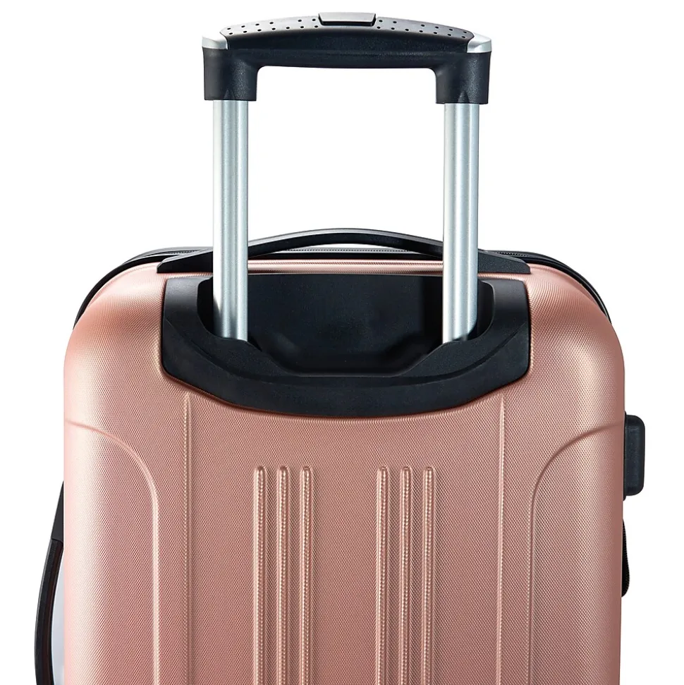 - The hardside pieces are made of rugged ABS plastic and have push-button telescopic handles, 360 spinner wheels and fully lined interior.