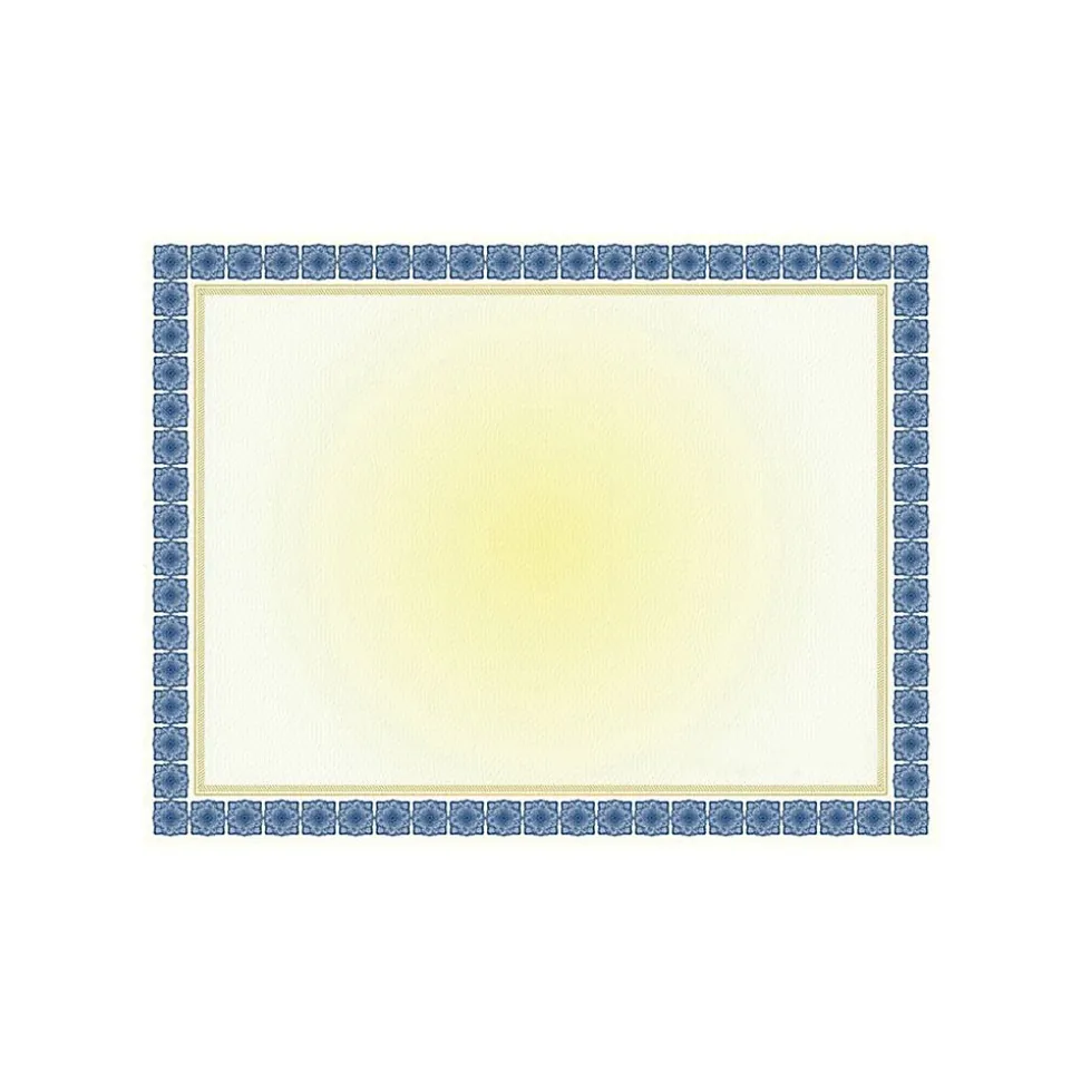 The Geographics 48673 blue/gold colored premium Kensington graduation certificate measuring 8 1/2″ x 11″, is perfect for diplomas, award certificates and awards. This certificate has foil finish and suitable for use with inkjet printers, sold as 15 per pack.