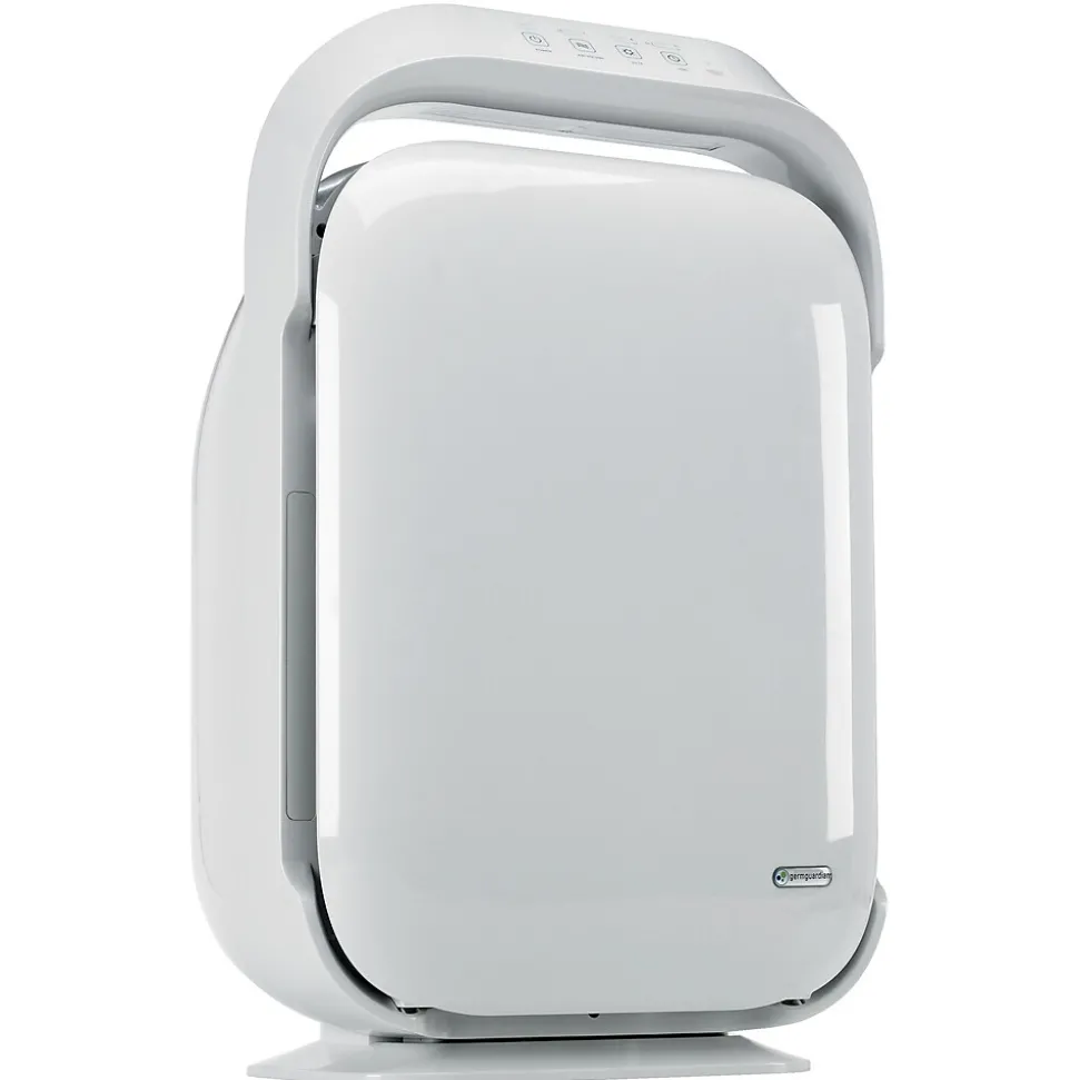 Allergens, germs and odors, beware! The Hi-Performance Air Purifier is ideal for allergy sufferers. A True HEPA filter relieves allergies by capturing 99.97% of dust and allergens down to .3 microns. A large activated granular carbon filter attacks smoke, cooking and pets odors along with harmful VOC’s emitted by common household products. UV-C light technology kills germs and mold spores. An optional ionizer can be turned on to boost allergen control. The purifier is ideal for rooms up to 378 sq. feet.CADR ratings are high with 244 (smoke); 310 (dust) and 346 (pollen).