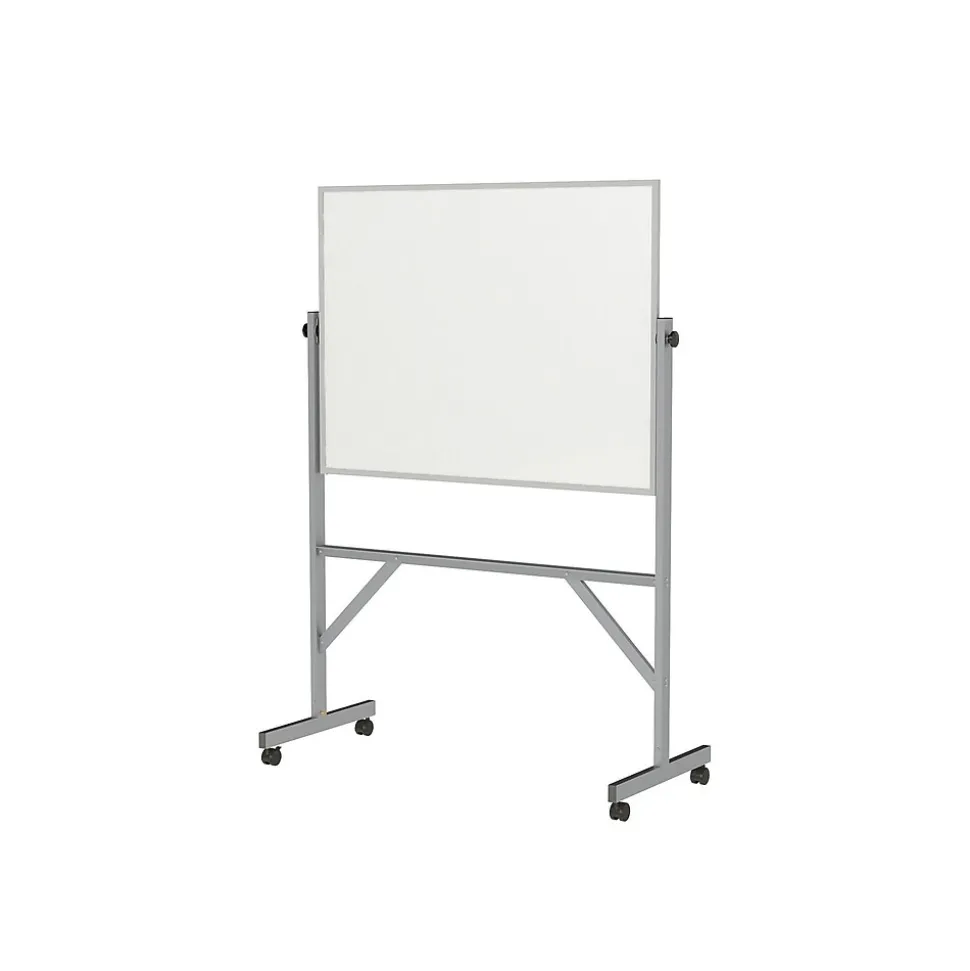 - Reversible freestanding board with four durable casters (two locking wheels); board surface can be locked in place