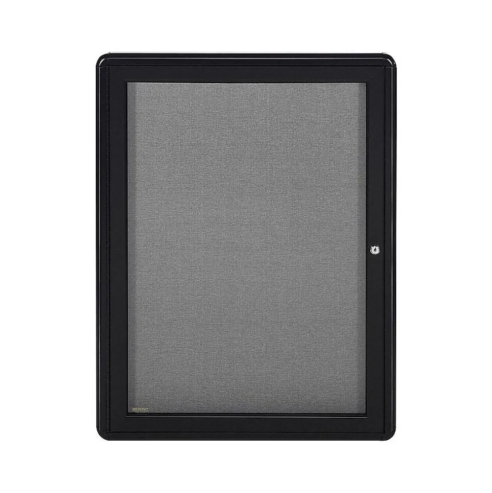 Draw attention to important documents and other materials while keeping them secure thanks to this Ghent 2′ x 3′ enclosed bulletin board. Pinned items stay firmly in place in the high-density fiberboard covered with durable, gray, fade-resistant fabric and are enclosed in a black powder-coated aluminum frame with soft edges and rounded corners. The doors are constructed with shatter-resistant acrylic and feature a lock with two keys, perfect for areas with a lot of traffic.