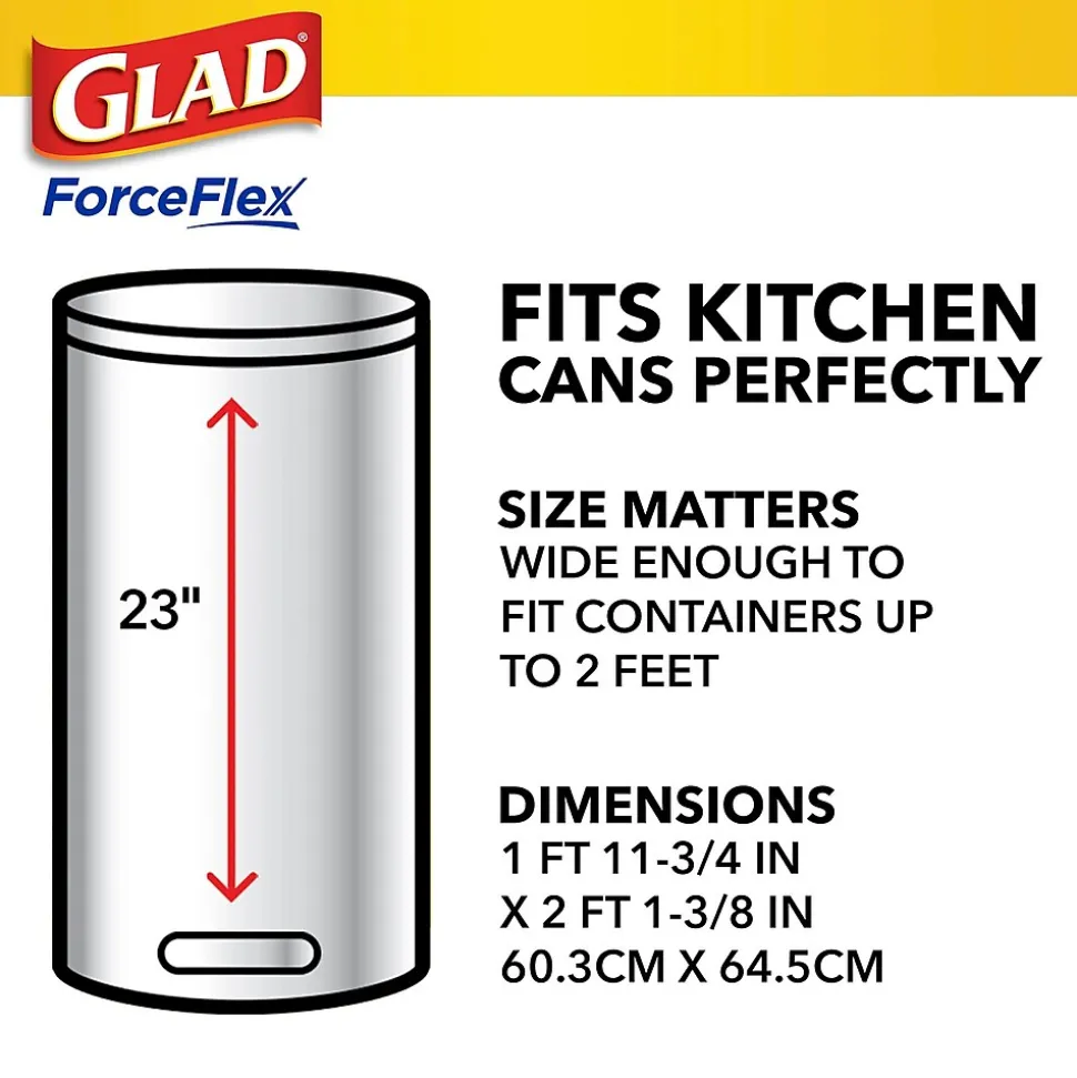 - FORCEFLEX STRENGTH: Glad’s trusted ForceFlex technology allows the bag to stretch and expand over heavy loads with sharp edges, delivering durable strength; packaging may vary