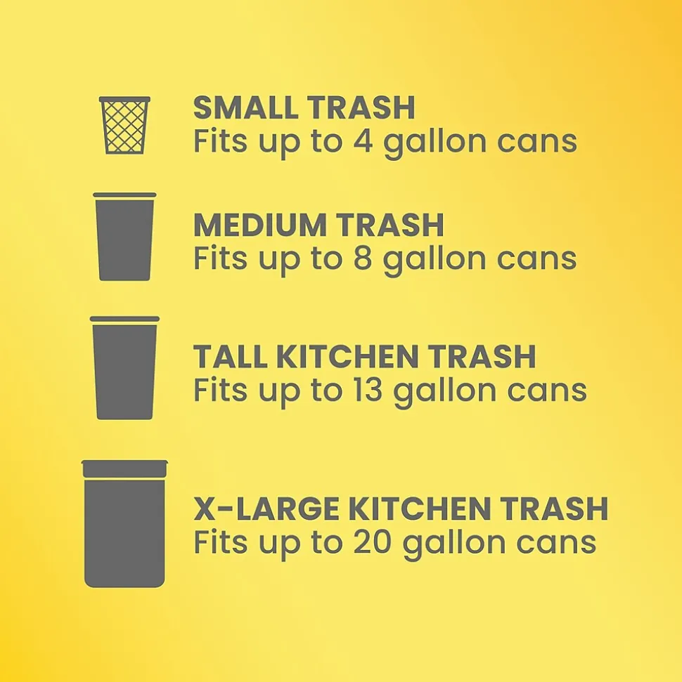 Let the stretchable strength of Glad ForceFlex handle all the messes our busy daily life can throw at it and then some. Glad Tall Kitchen Drawstring Trash Bags are designed with ForceFlex technology to give extra flex as it expands around sharp edges and heavy loads, so you can pack it in while resisting tears, rips and punctures. These trash bags are designed with two layers for extra leak protection. RipGuard and LeakGuard technology prevent seepage of liquids and keep trash contained. Fight nasty kitchen odors with the exclusive Glad trash bag combination of steady release of Febreze freshness and irresistible Gain Original scent that traps, locks and neutralizes odors. The durable Grips The Can Drawstring ensures a tight grip on the trash can to keep it in place. Take the trash to the curb with no fear of leaks and tears, and no frustration. FEBREZE and GAIN are used under license from The Procter & Gamble Company or its affiliates.