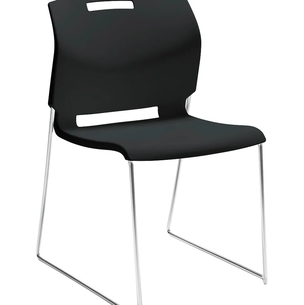 Global Popcorn Plastic Stack Chair without Arms, Asphalt Black, 4/Ct (TD6711-BLK)