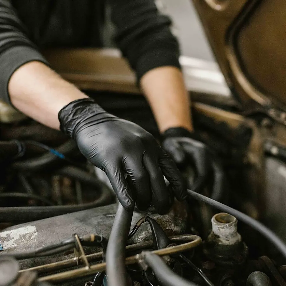 The Ammex Gloveworks black nitrile powder-free industrial glove will get as down and dirty as you need. It’s the disposable glove that won’t quit on you. This premium industrial-grade nitrile glove is the perfect combination of strength, dexterity, and comfort. The glove is more than 50% thicker than standard nitrile gloves, which adds durability, and that means fewer glove changes over the course of a shift. Nitrile has three times the puncture resistance of latex, and at 5-mil thickness in the palm with 6-mil fingertips, the glove holds up when working with tools and machinery. This glove offers excellent protection against a long list of common and specialty chemicals and is nearly as elastic as latex, so it conforms to your hand to deliver comfort, a great fit, and a high level of tactile sensitivity. The micro-roughened surface and textured fingertips give the glove a dependable grip. A polymer coating makes it easy to put on the glove as well as to take it off, and since it’s powder-free, there’s no residue to damage a perfect finish or an adhesive bond. This glove works for automotive, industrial, janitorial, sanitation, food service, and safety applications. The black color hides dirt, grease, and grime to help maintain a clean, professional look. The glove is made from component materials that comply with FDA regulations for food contact. Also suitable for countless uses around the house, from cleaning to painting to repairs. For the pro who takes on the toughest jobs, the Ammex Gloveworks black nitrile powder- and latex-free industrial glove is a perfect fit.