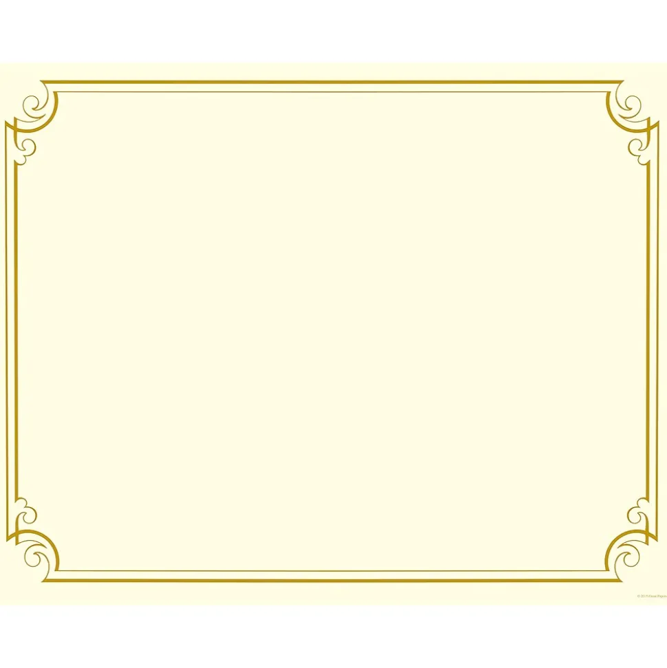 Present these golden scroll achievement certificates to contest winners, program graduates and top employees. These letter-sized certificates are bordered with a scroll pattern in gold foil to emphasize the importance of the achievement. This pack includes 12 printer-compatible Great Papers golden scroll certificates to help recognize full teams or departments.