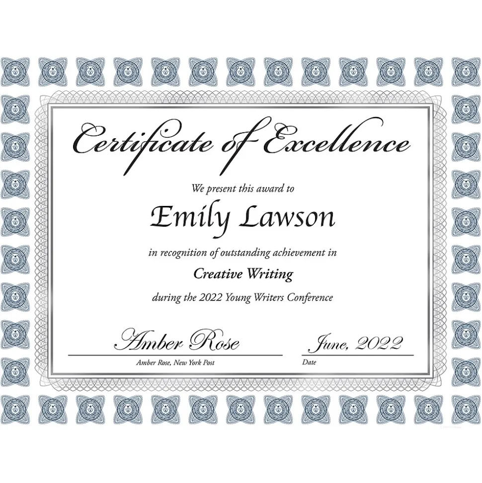 | Material of Item The general theme or type of recognition that is pre-printed on the certificate. | General |