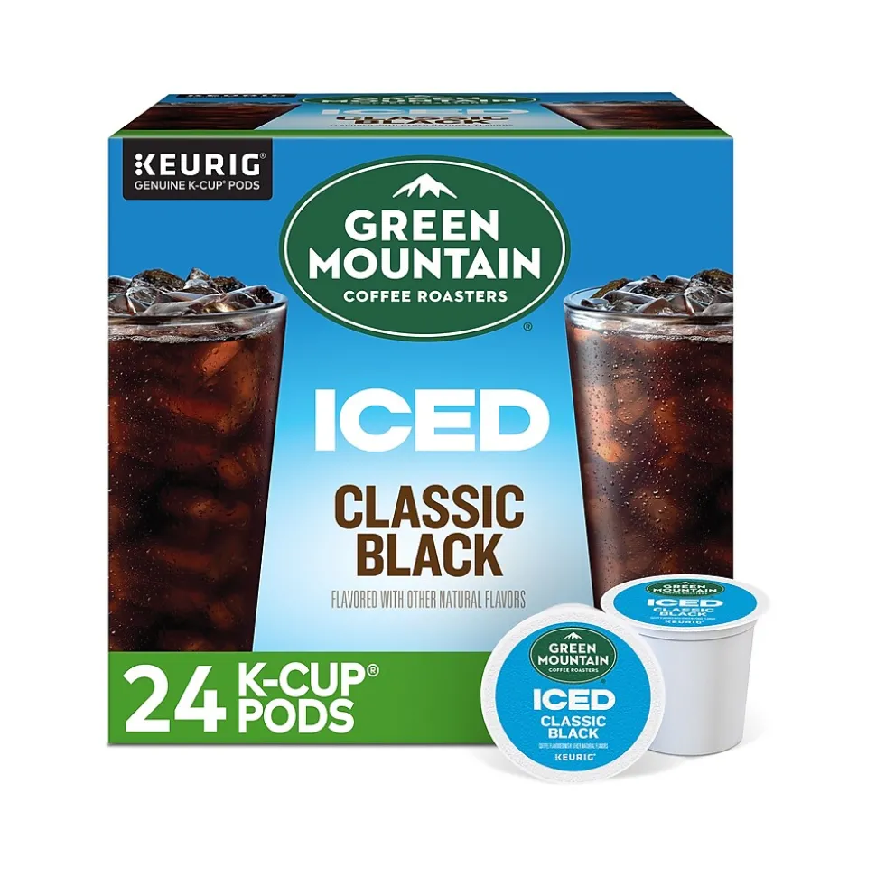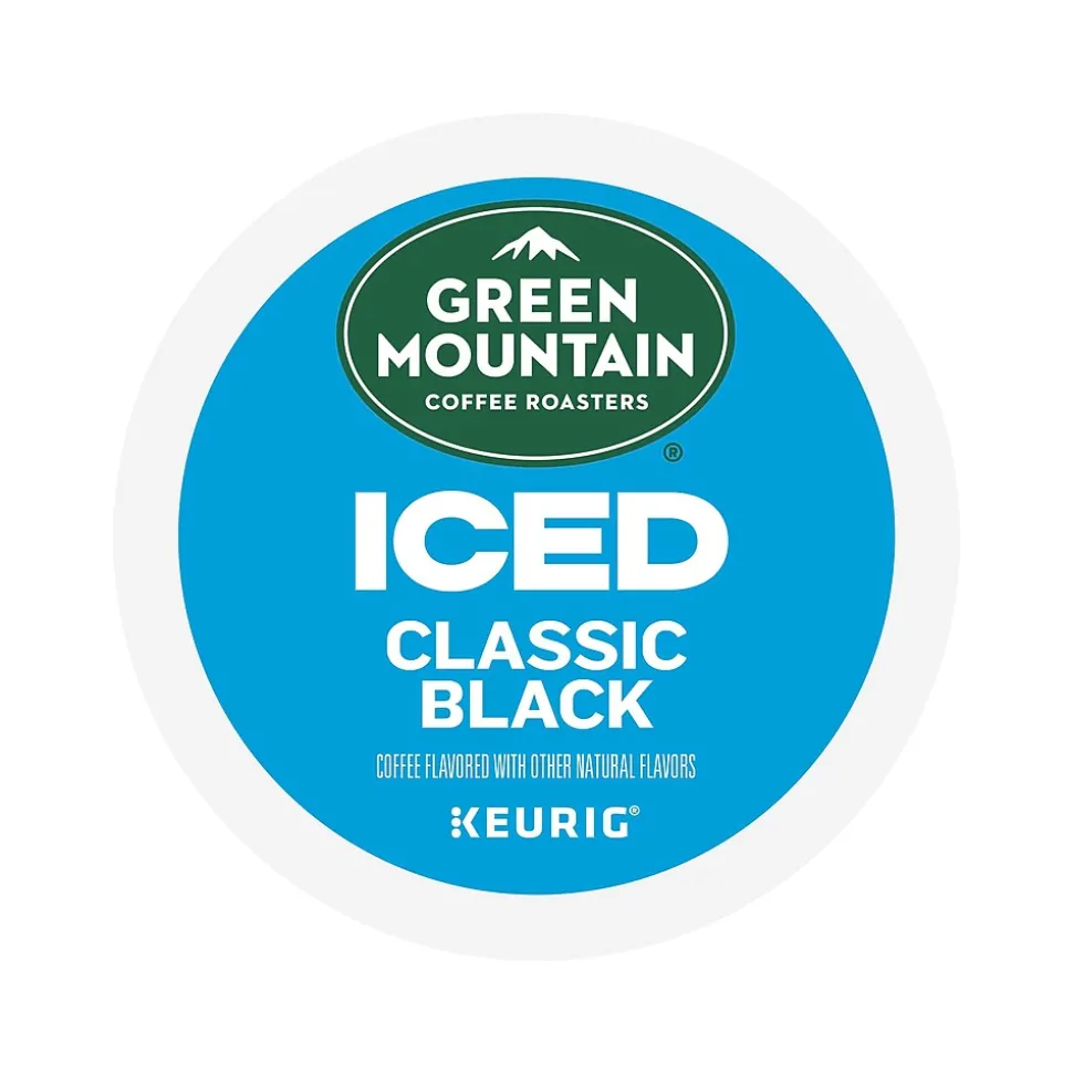 With a vibrant taste and subtly sweet notes of cocoa flavor, the Green Mountain Coffee Roasters Classic Black iced coffee K-Cup pods are specifically designed to hold up to ice. They start with a specially crafted premium medium roast blend, then add an extra boost of 100% arabica coffee captured at its peak flavor. All so you can enjoy a cafe-quality, exceptionally rich, wonderfully balanced, and refreshingly full-flavored iced coffee that’s anything but ordinary. These K-Cup pods are compatible with all Keurig single-serve coffee makers, and each one is filled with the freshest ground coffee that will brew a perfect, great-tasting cup, every time. This is certified Orthodox Union kosher and committed to being 100% responsibly sourced. Enjoy the same great-tasting coffee you know and love, and when you’re done, just peel, empty, and recycle.