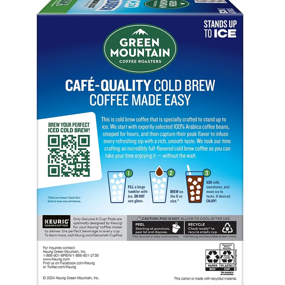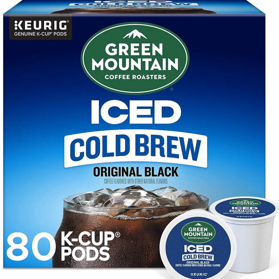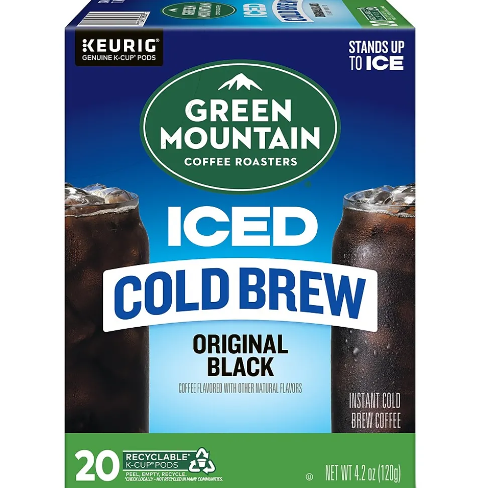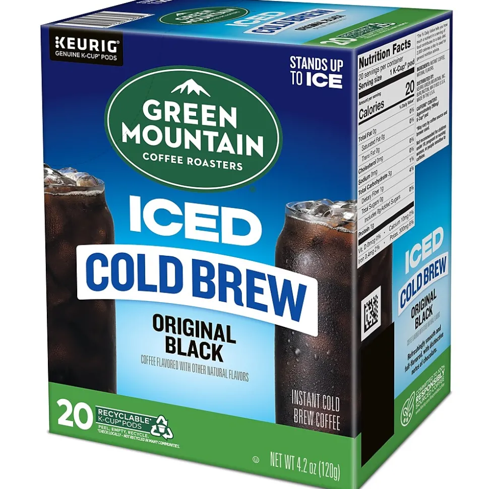 With a vibrant taste and subtly sweet notes of cocoa flavor, the Green Mountain Coffee Roasters Classic Black iced coffee K-Cup pods are specifically designed to hold up to ice. They start with a specially crafted premium medium roast blend, then add an extra boost of 100% arabica coffee captured at its peak flavor. All so you can enjoy a cafe-quality, exceptionally rich, wonderfully balanced, and refreshingly full-flavored iced coffee that’s anything but ordinary. These K-Cup pods are compatible with all Keurig single-serve coffee makers, and each one is filled with the freshest ground coffee that will brew a perfect, great-tasting cup, every time. This is certified Orthodox Union kosher and committed to being 100% responsibly sourced. Enjoy the same great-tasting coffee you know and love, and when you’re done, just peel, empty, and recycle.
