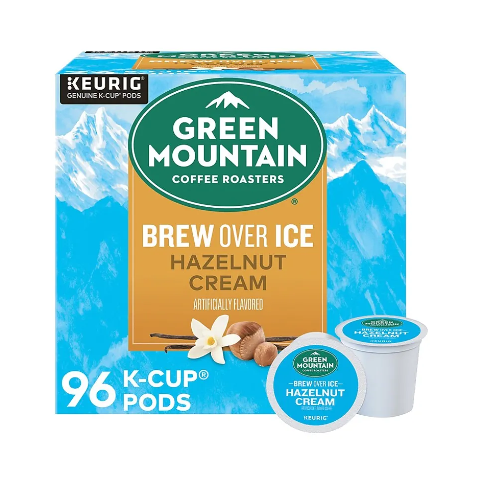The mountains are a special place. It’s where the Green Mountain Coffee Roasters brand was born. With a rich hazelnut flavor and the sweet, creamy taste of vanilla, the Green Mountain Coffee Roasters iced Hazelnut Cream K-Cup pod is specifically designed to hold up to ice. Green Mountain starts with a specially crafted premium medium roast blend, then adds an extra boost of 100% arabica coffee captured at its peak flavor. All so you can enjoy a cafe-quality, exceptionally rich, wonderfully balanced, and refreshingly full-flavored iced coffee that’s anything but ordinary. This K-Cup pod is compatible with all Keurig single-serve coffee makers, and is filled with the freshest ground coffee that will brew a perfect, great-tasting cup, every time. The Green Mountain Coffee Roasters iced Hazelnut Cream coffee is certified Orthodox Union kosher and committed to being 100% responsibly sourced. That means the coffee the Green Mountain purchases is grown and sold in adherence to a credible sourcing program that aligns with the company’s Responsible Sourcing Guidelines. Simple. Delicious. And recyclable.