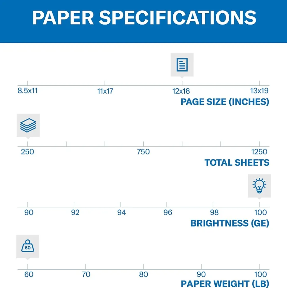 Hammermill® 60 lb. Ultra smooth color copy digital cover in white color 12″ x 18″ and has a smooth surface for toner adhesion. Digital cover offers super bright photo for excellent image contrast and color reproduction, sold as 1250 per case.