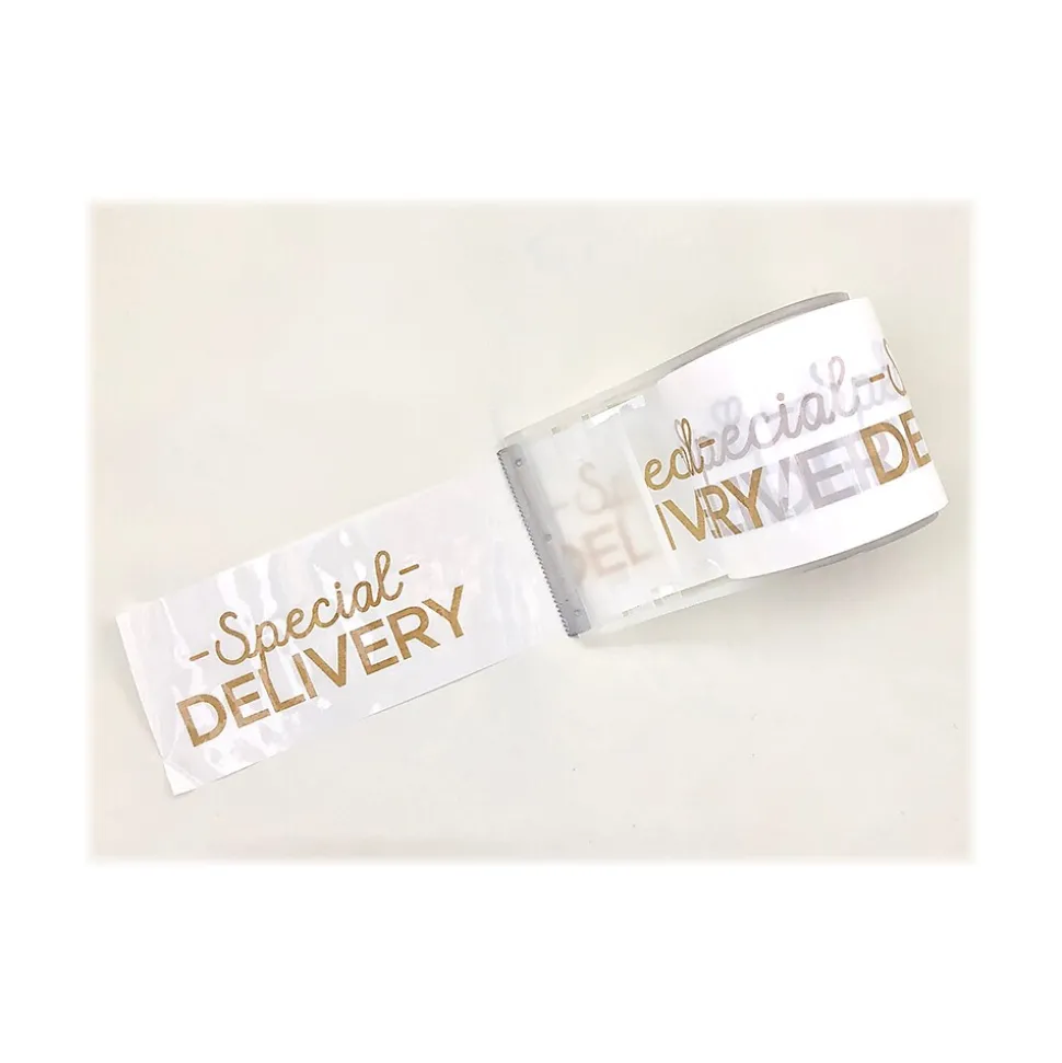 This Happy Mail packing tape offers excellent adhesion, dispensing, and handling properties.