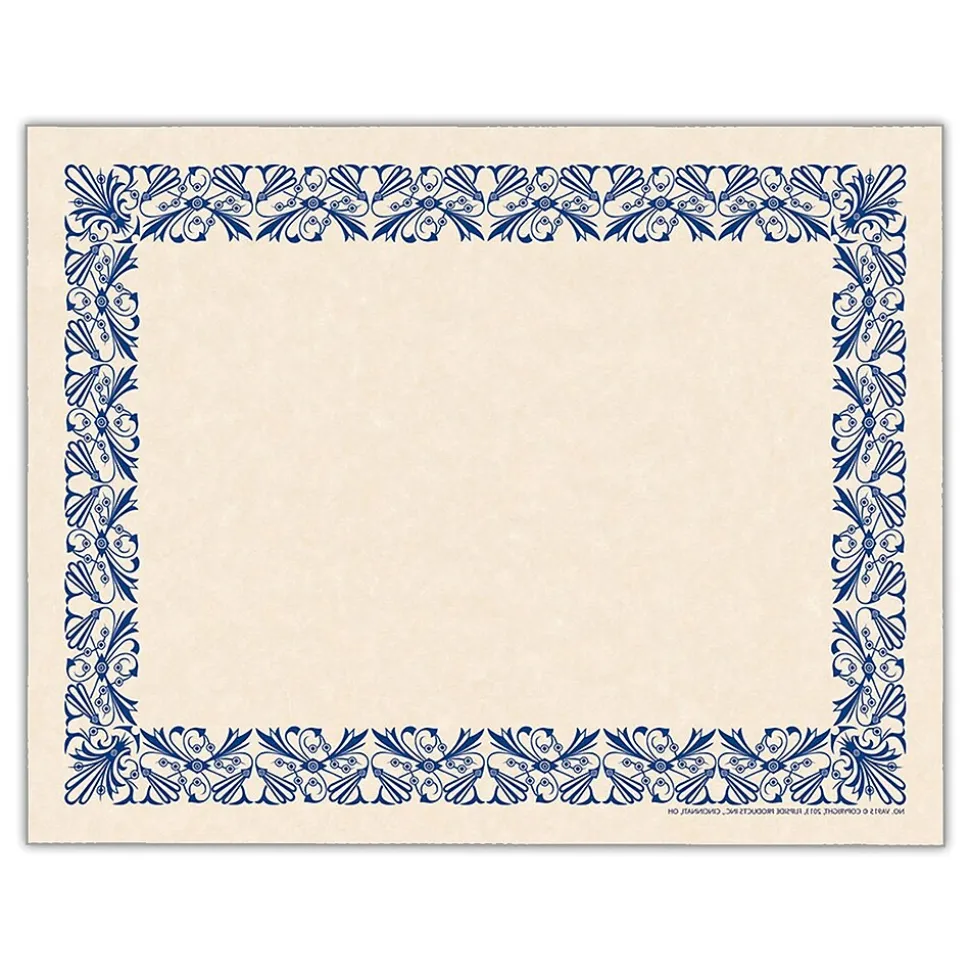 - Includes border paper, matching certificate folder, and gold foil seals.