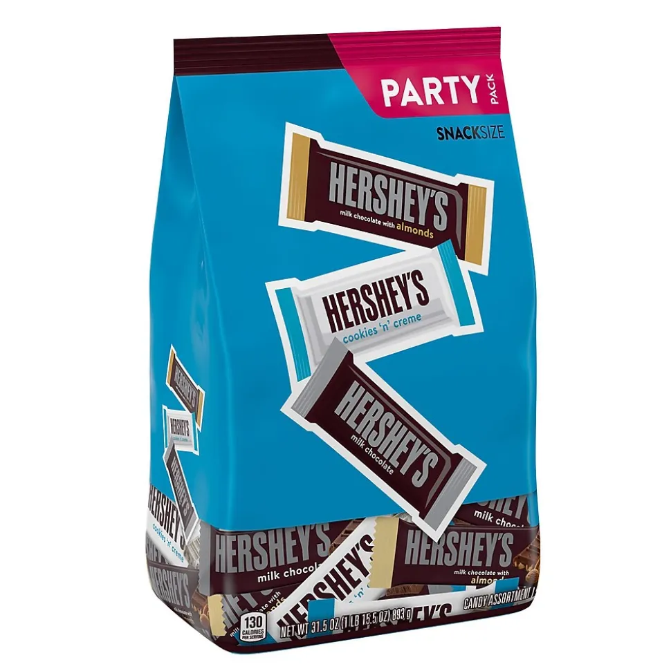 - Contains one (1) 31.5-ounce bulk party pack of HERSHEY’S Assorted Milk Chocolate and White Creme Snack Size Candy Bars