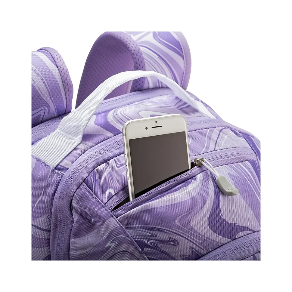 The High Sierra Swoop SG marble lavender backpack is full of external pockets, so everything has the perfect home. Live life organized with dedicated storage for tech and thingamajigs. Comfort’s never been cooler than with straps and back panel with air mesh and foam. The backpack also offers a convenient fleece-lined pocket for your phone and sunglasses. Be bold. Be bright.