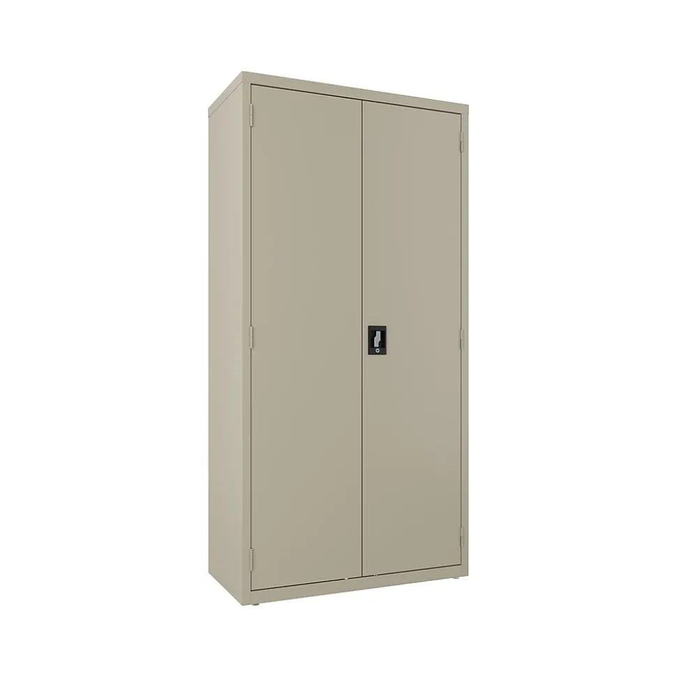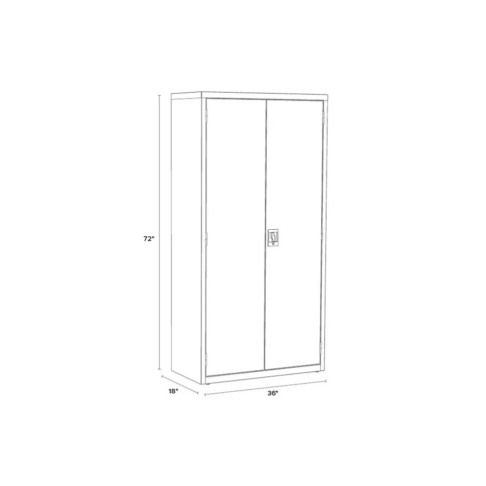Steel wardrobe storage cabinets provide a concealed storage solution that is useful in various markets including business, industrial, education, hospitality and healthcare. Wardrobe cabinets are a space-efficient, flexible storage solution. This wardrobe has durable, fully welded steel construction. Painted Steel is a non-porous surface that is easy to clean. With three half width adjustable shelves, one full width fixed shelf and a hang rod this cabinet provides flexible storagethat will help keep your essential materials organized. Recessed handle with core-removable lock provides a three point locking system that locks the top, bottom, and doors to keep your items secure. Shelves are adjustable in 1″ increments with 180 lb shelf capacity on the full width shelf and 90 lb capacity on half shelves . Limited lifetime warranty. Unit meets or exceeds ANSI-BIFMA industry standards. Greenguard gold certified.