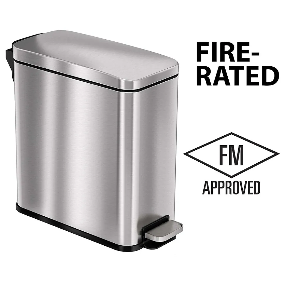 FM Approvals tested and certified, this HLS Commercial 3 gal. trash can provides the compliance, protection, and style you need and want in your facilities. Bin fires are quickly extinguished with the special fire-retardant liner material and a tight lid design that restricts airflow to the interior, starving the flame of necessary oxygen. Designed to be as aesthetically pleasing as it is safe and easy to use, the elegant stainless steel bin complements any decor. The smooth and easy pedal requires minimal effort and is coupled with a soft and silent lid close. Emptying the trash and recycling is quick and clean with the removable color-coded inner buckets.