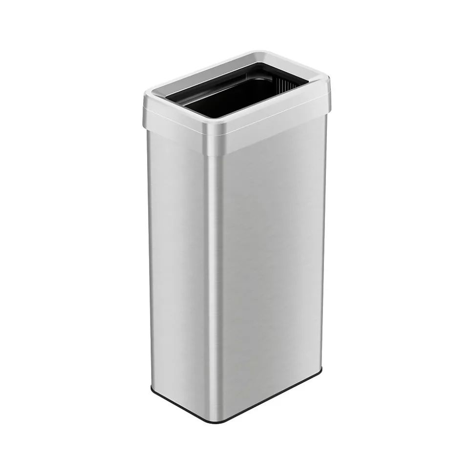 - Slim and space-saving trash can is great for multifamily residential, health-care, hospitality, and other high-traffic venues