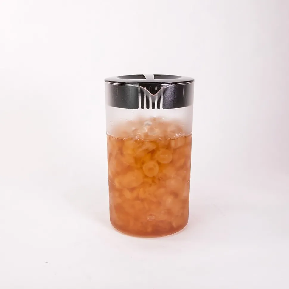 - HOW TO BREW: Use pitcher to measure your water, then pour the water into the water reservoir. Add ice to your pitcher, add tea bags, leaves, or coffee grounds to the steeping basket with a paper filter, and press the on button.
