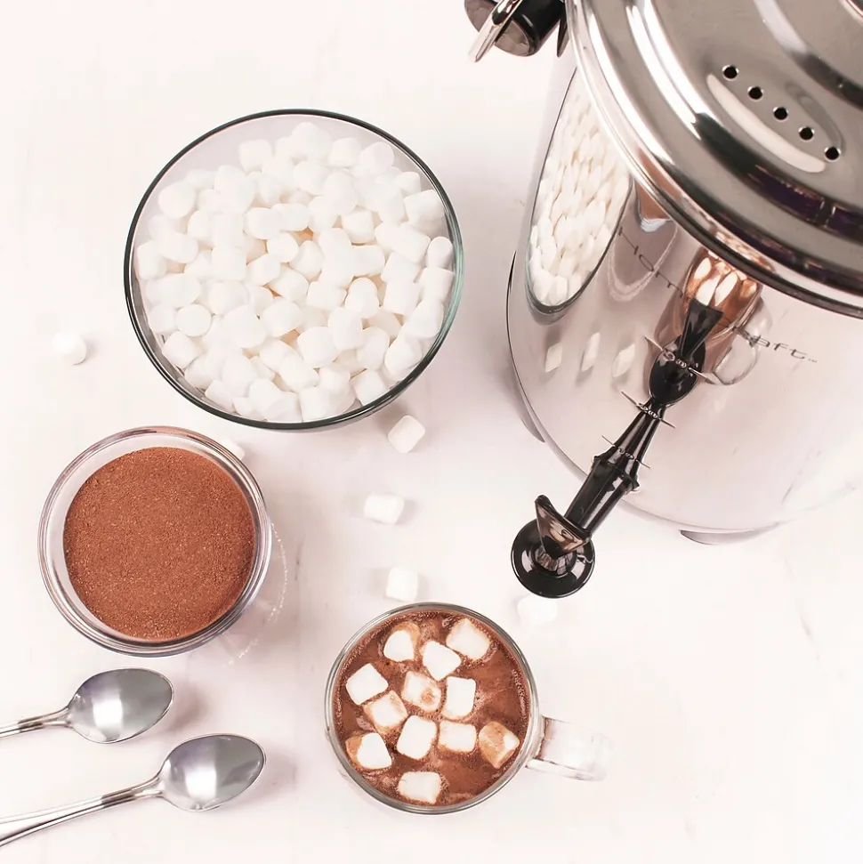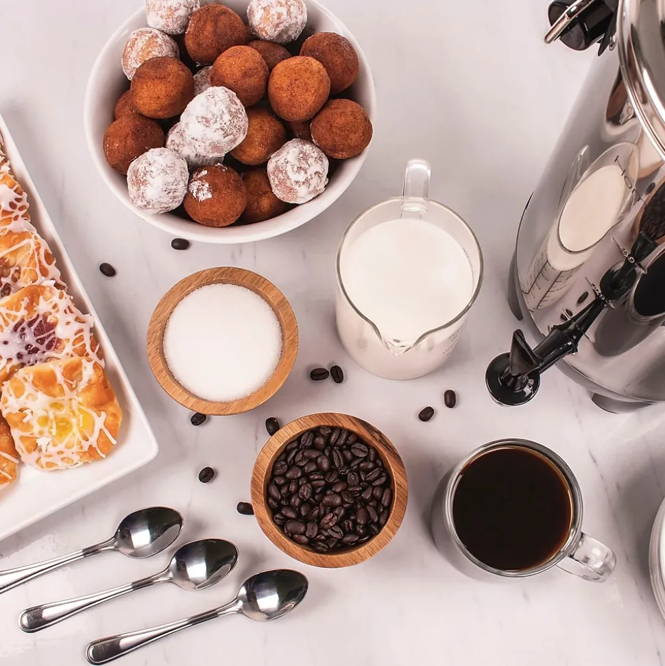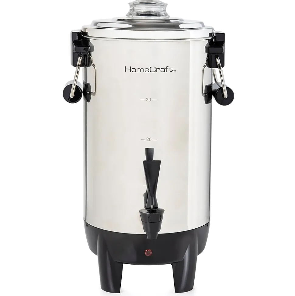 Perfect when hosting large gatherings or for use in meeting rooms, lounges and cafes, this polished stainless steel coffee urn efficiently brews up to 30 cups at a time of coffee, tea, cider, hot chocolate and more. When done brewing, the keep warm function will keep the brew hot for hours and ready for guests.