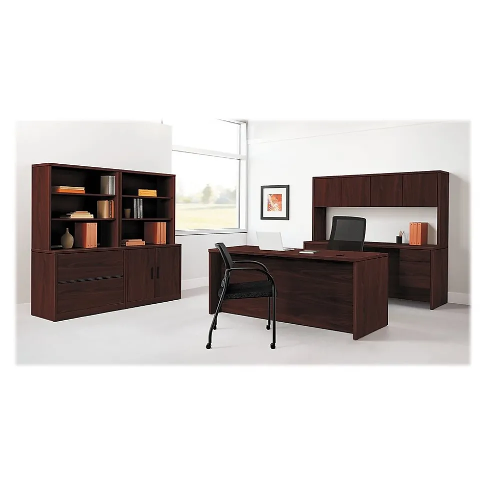 - Durable inner-frame construction stands up to the stress of frequent moving and relocation, while mahogany laminate material perfectly complements any workspace or office arrangement