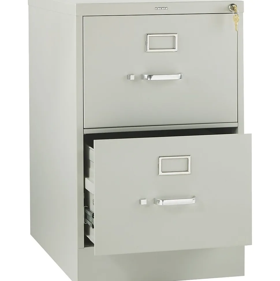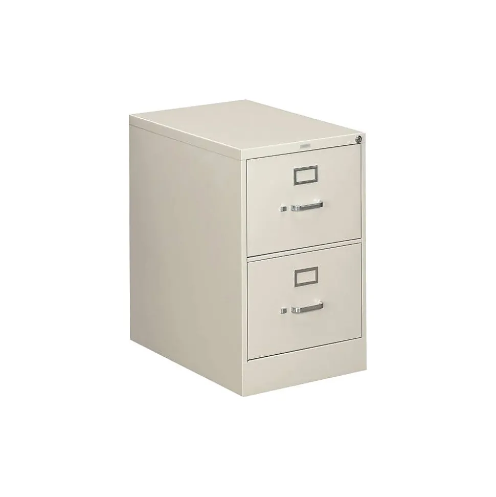 HONĀ® 310 Series 2-Drawer vertical file cabinet in light gray finish measures 29.0″ x 18.25″ x 26.5″ and has double-walled front kickplate to resist impact. Legal size cabinet with clean visual design is ideal for central records management areas.