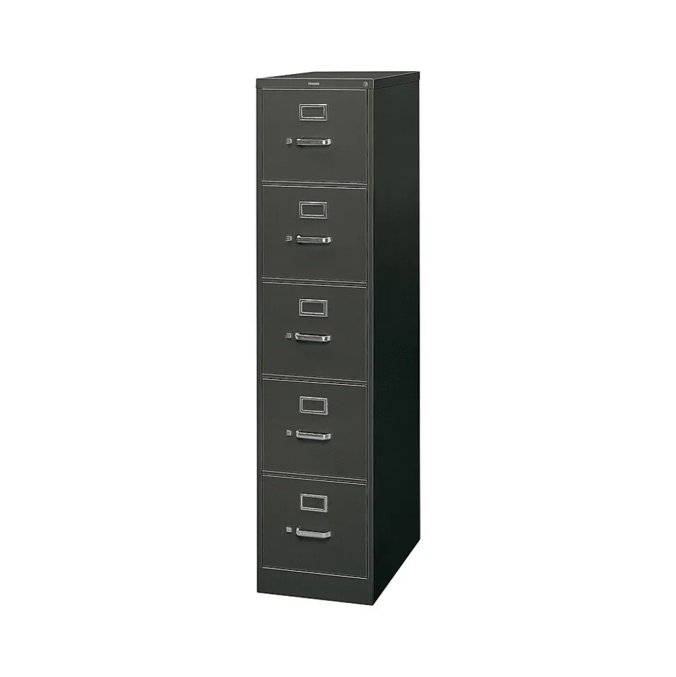 Hold essential records in this five-drawer filing cabinet. Each drawer has a thumb latch for secure closure and a steel ball bearing suspension system for a seamless glide and smooth access.
