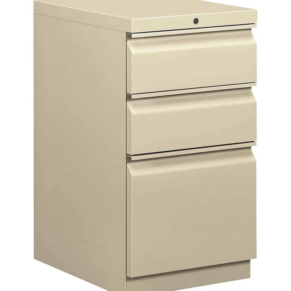 HON Brigade Series 20″ Vertical mobile file cabinet in putty color is ideal where intense filing is required. Cabinet has 3 letter size drawers with “R” pull design for smooth drawer operation and is ideal for file storage.