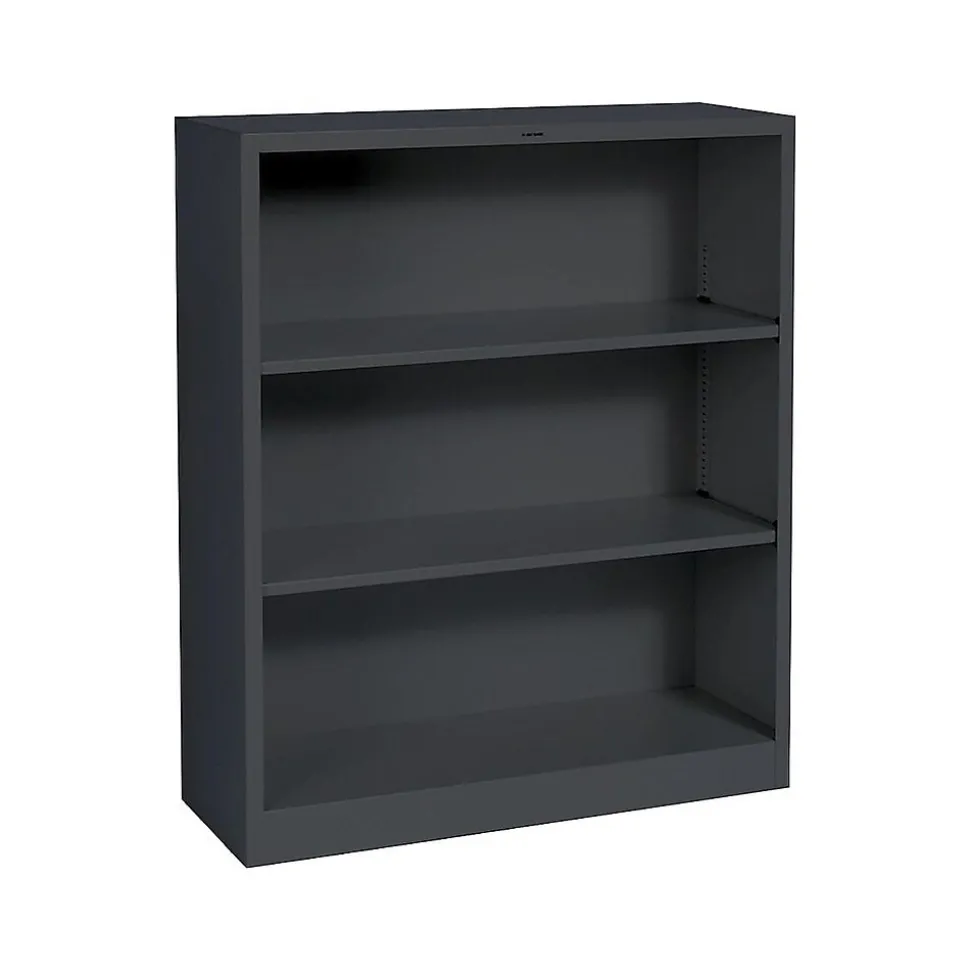 Gain control of disorder with this sturdy, steel bookcase. The three shelves are adjustable for customizable height, and extra shelves are available for additional storage. This black Hon bookcase has a welded construction for strength and durability and is fully assembled for convenience.