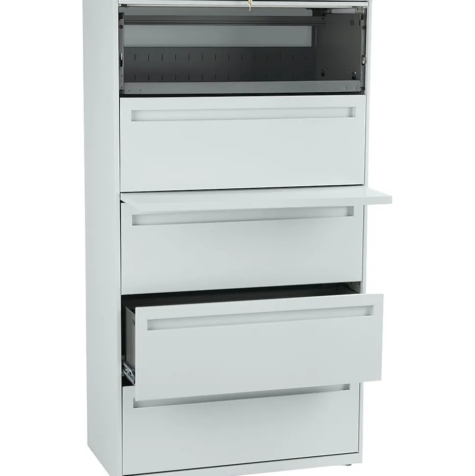 - 5-drawer lateral file accommodates letter- or legal-size files