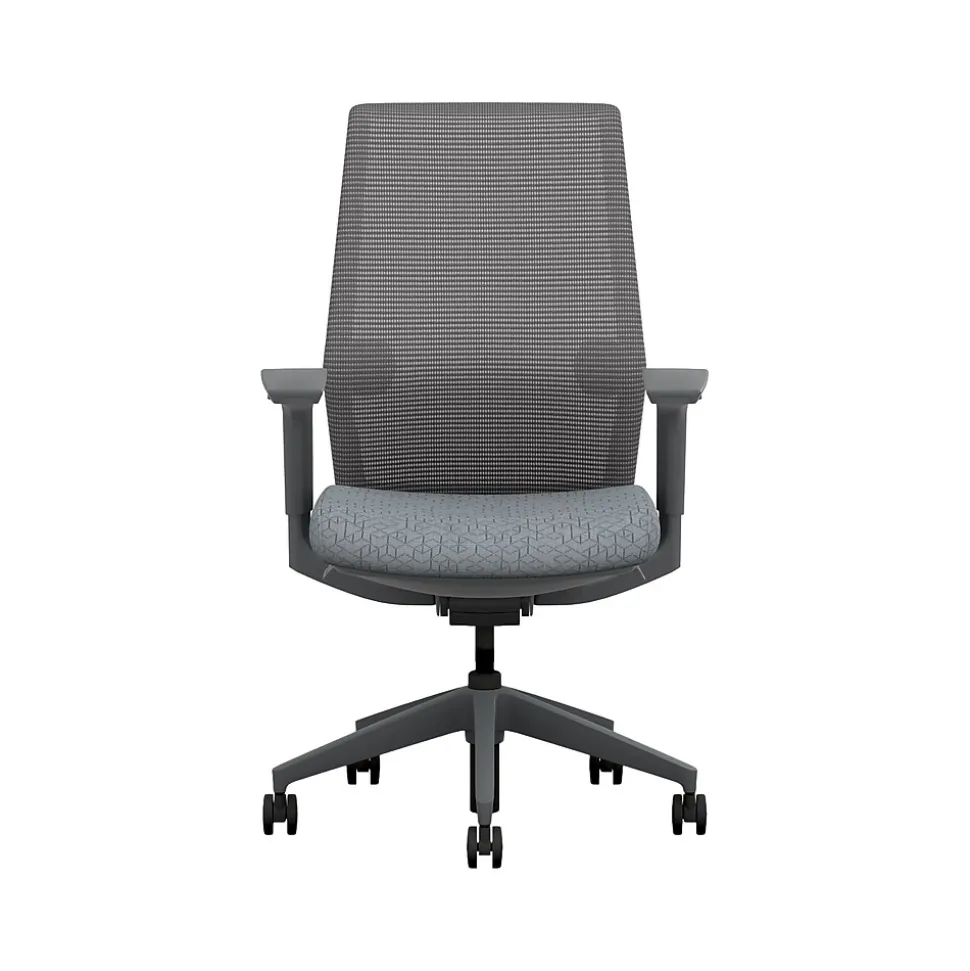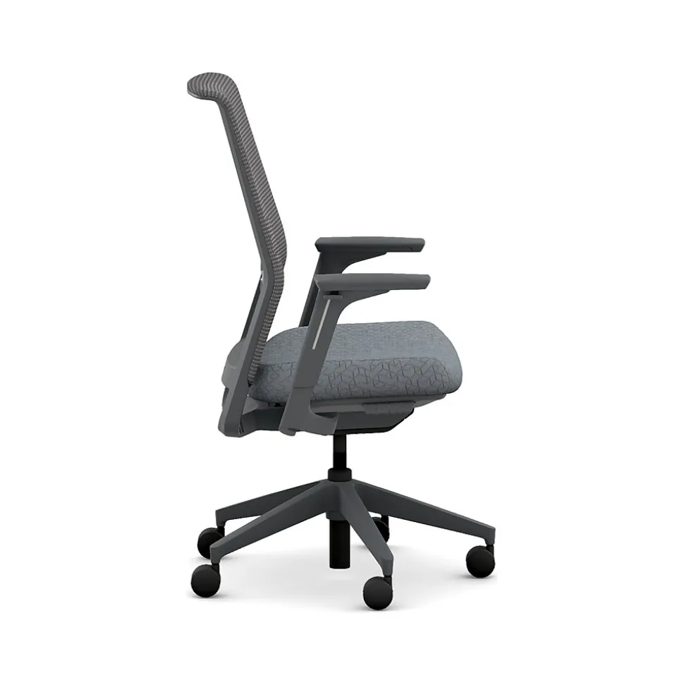 - Four-way stretch mesh back in charcoal gray, Apex basalt gray fabric seat, and charcoal gray frame