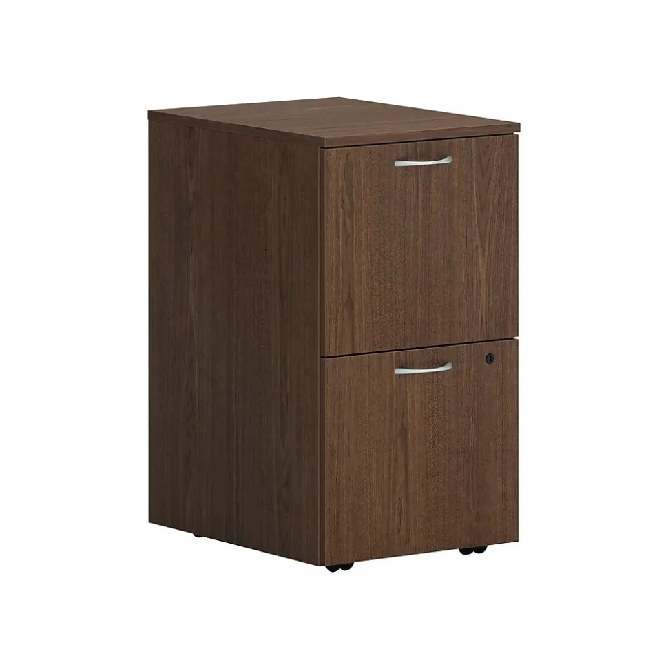 - Two-drawer mobile pedestal cabinet holds letter- or legal-size documents