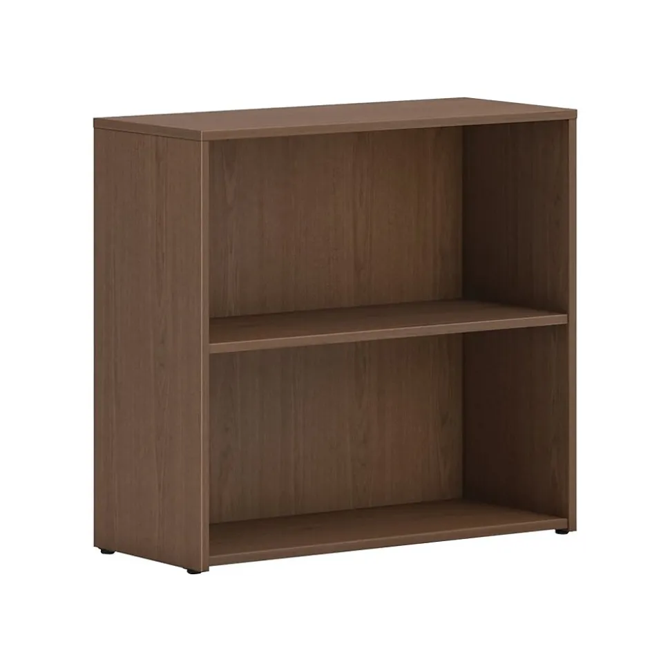- Standard bookcase is made of woodgrain laminate and comes in sepia walnut finish