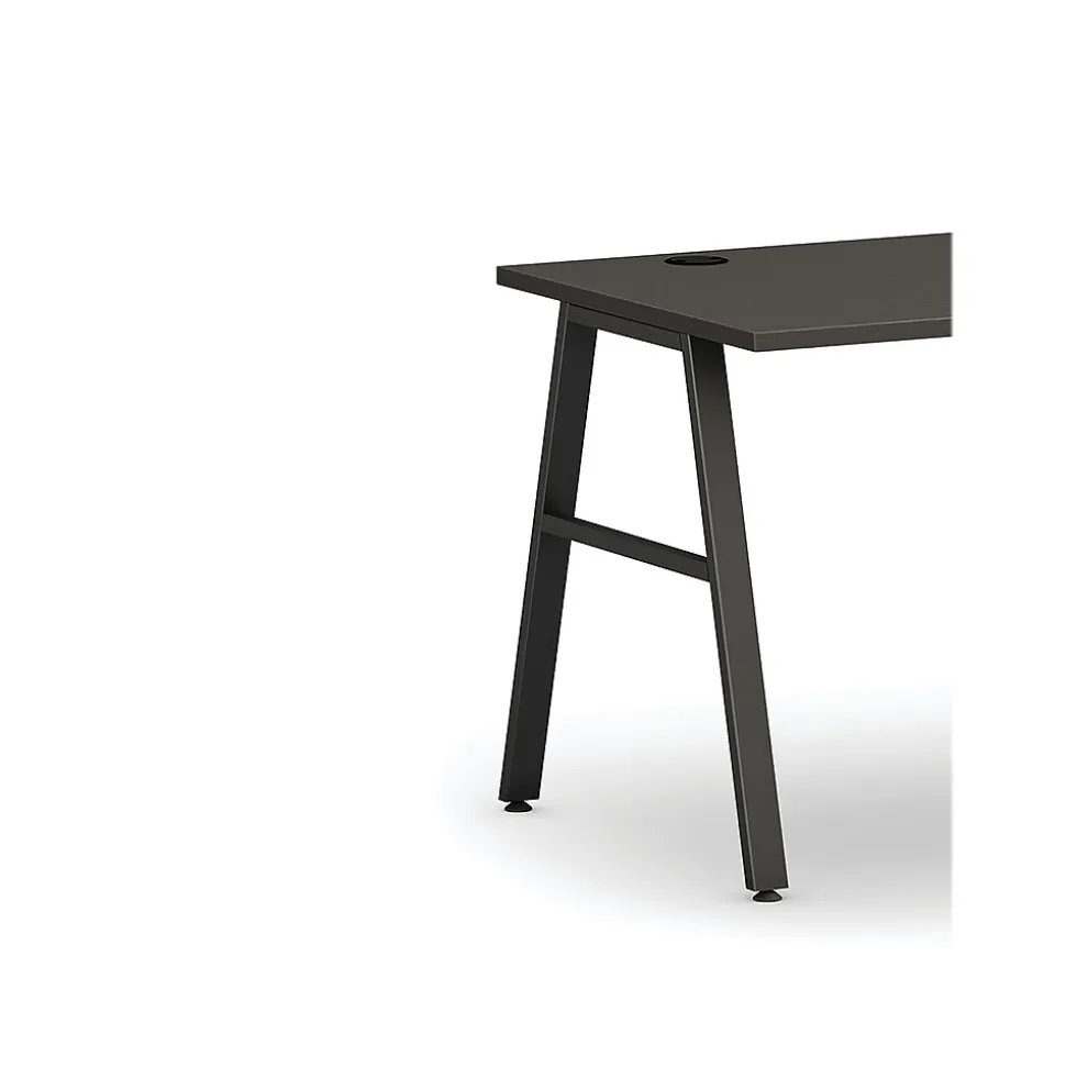 There is always beauty in simplicity, but with the HON Mod desk collection, you’ll also find variety and value. This table desk features a 48″W x 24″D work surface sitting atop A-frame legs. The durable laminate surface is available in a variety of attractive finish options, which allows you to mix and match with other Mod elements. It’s totally productive. Totally adaptable. Totally Mod. The laminate finish is slate teak, and the A-leg color is black.