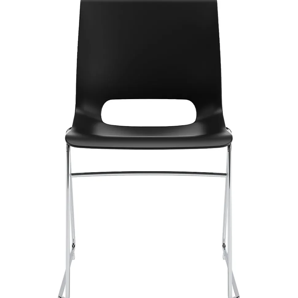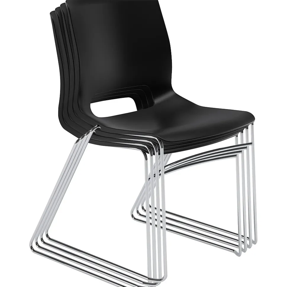 Hon Motivate High density plastic stacking chair features classy onyx shell to provide unique comfort to your body. Chair with 300 lbs of capacity can be stacked up to 12 high on the floor or 40 high on cart to save maximum space.