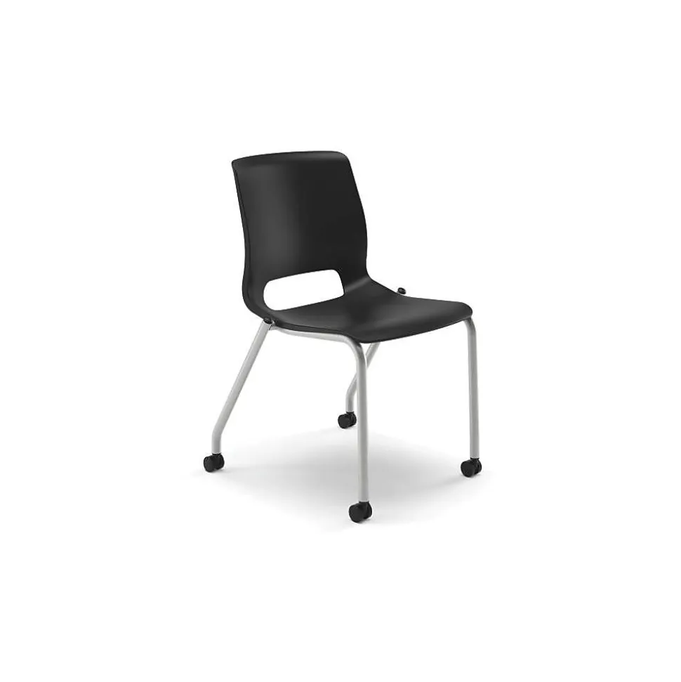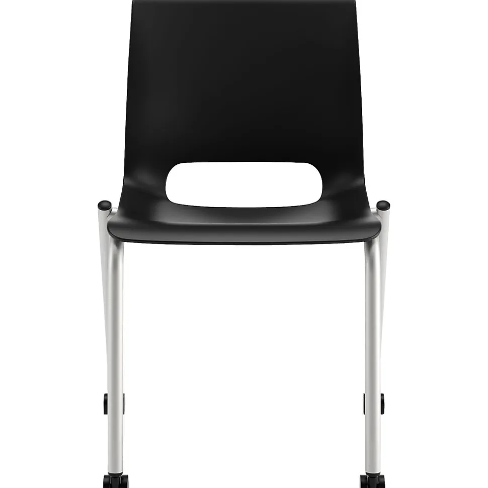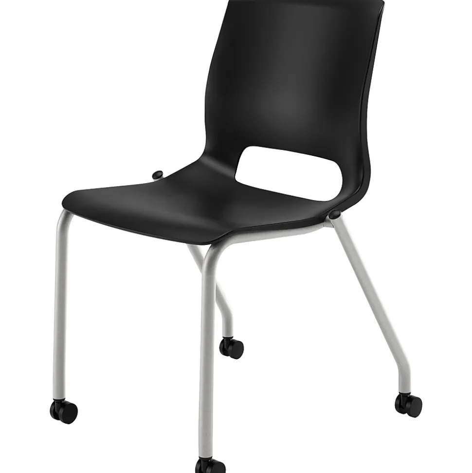 HONĀ® Motivate Onyx plastic armless stacking chair with stylish platinum frames features luxurious onyx shell to provide exceptional comfort to your body. Chair with 300 lbs capacity can be stacked up to 6 high on the floor to save maximum space.