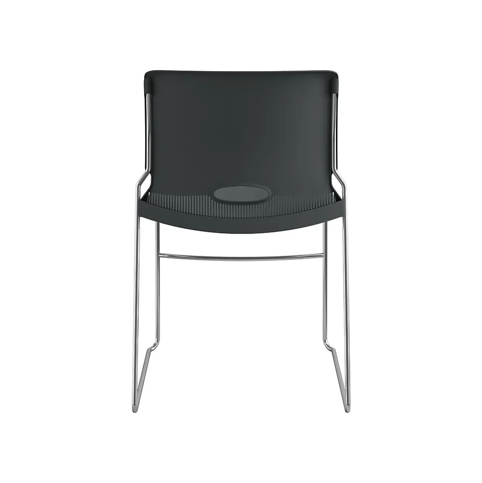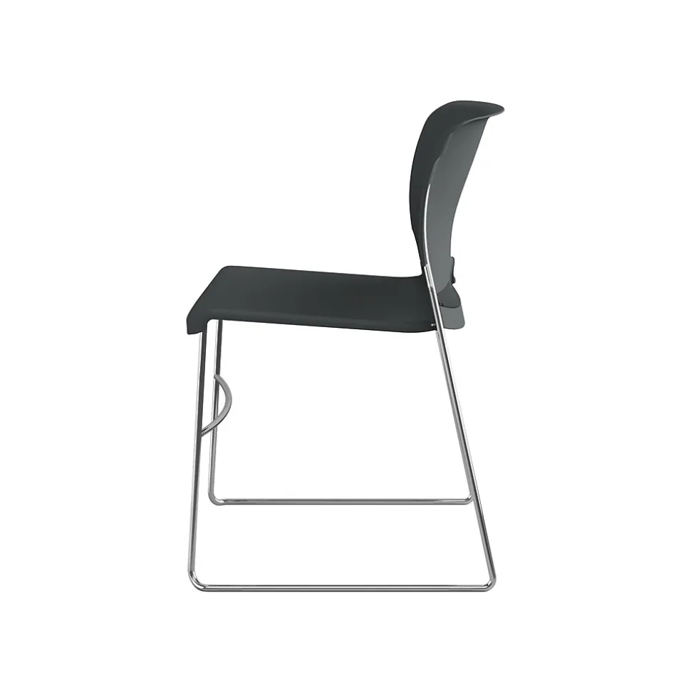 Provide sturdy, comfortable seating for employees, trainees, or seminar guests with these high-density stacking chairs. Contoured backrests offer lumbar support, and integrated handles make them easy to carry. With solid steel rod frames and a 300-pound weight capacity, this 4-pack of HON Olson stackable chairs ensures stability and long-lasting quality.