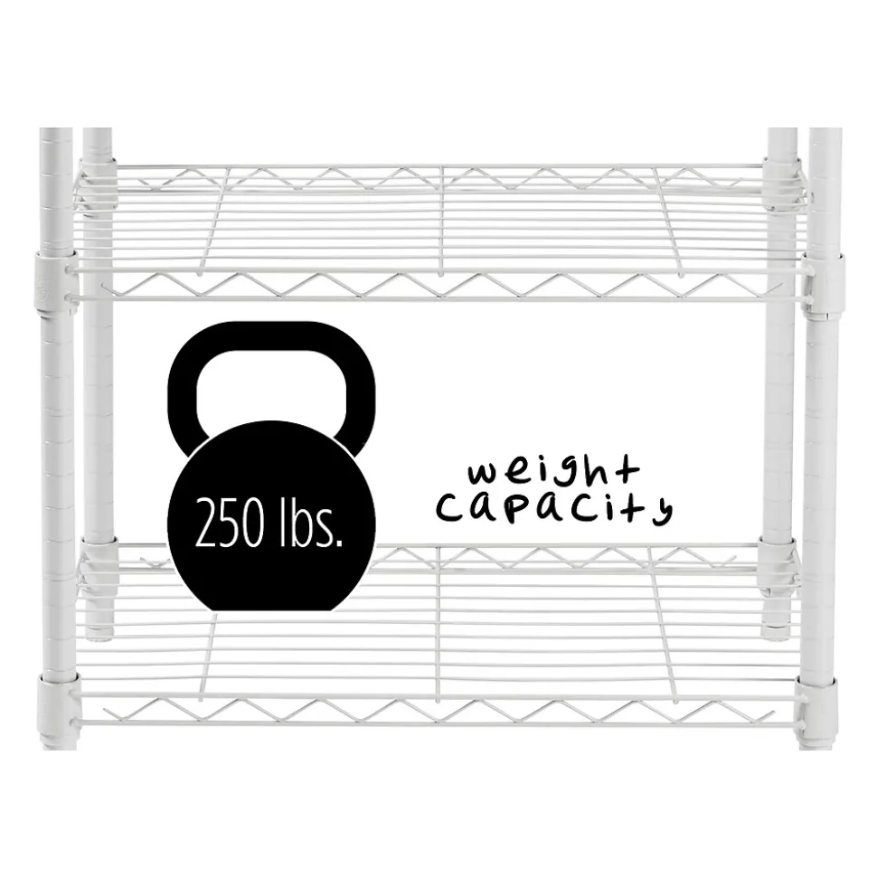 - Holds up to 250 pounds per shelf