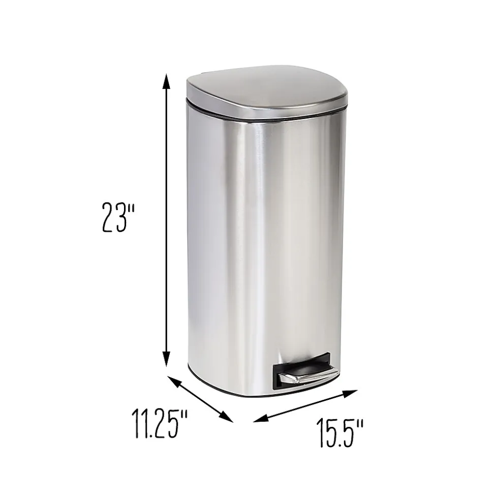 | Height in Inches Trash can or recycling bin features. For example: molded hand grips, wide rim, step on, touchless | Step On |