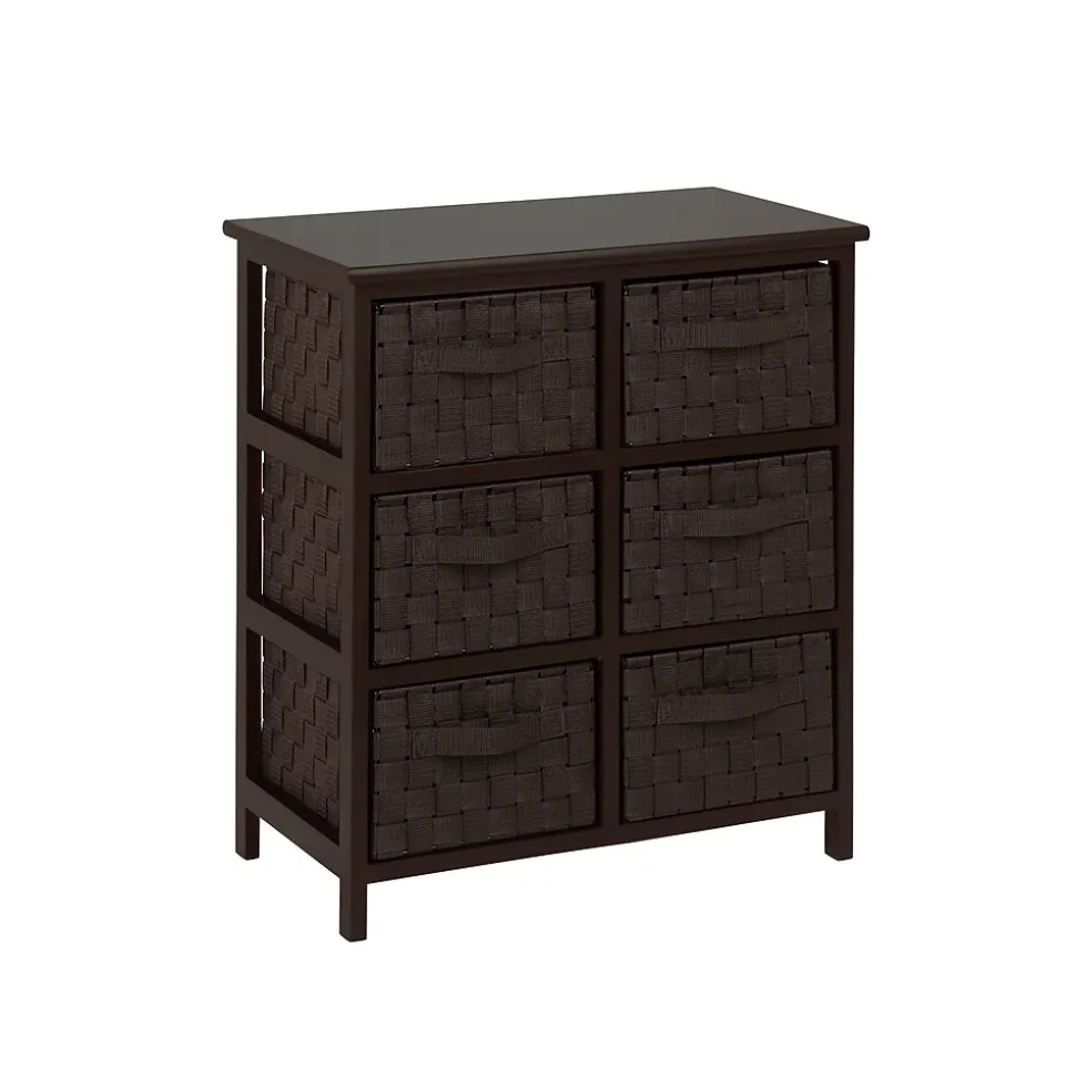 Honey-Can-Do TBL-03759 6-Drawer Storage Chest, Espresso Black. Getting organized has never looked better with this impressive double woven chest. This storage unit has six spacious drawers to hold clothes, tools, office supplies or anything else that needs tucked away. A natural wood top surface provides even more storage space and can double as a night stand. Coordinates with other pieces in Honey-Can-Do’s collection of double woven products.