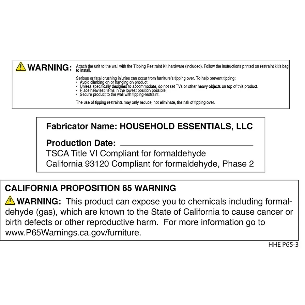 - âš WARNING: This product can expose you to chemicals including formaldehyde (gas), which are known to the State of California to cause cancer or birth defects or other reproductive harm. For more information go to www.P65Warnings.ca.gov/furniture.