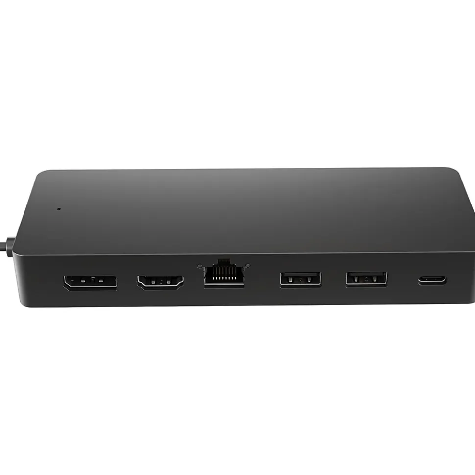 Unlock possibilities with the HP USB Type-C universal multiport hub, now supporting any USB Type-C compatible PC. Seven ports, one power and data pass-through cable, and many peripherals to plug and play however you like. It also supports dual 4K displays via HDMI and one DisplayPort. This hub is all you need to stay connected.